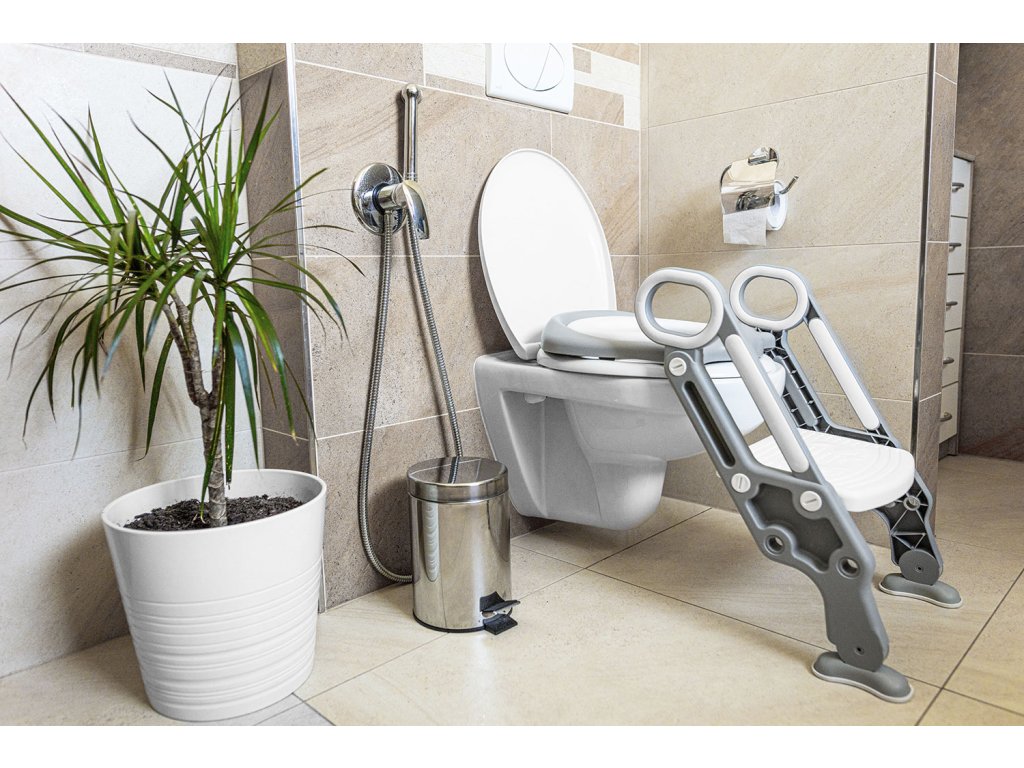 Nastavitelné schůdky na WC s anatomicky tvarovaným sedákem pro děti. Výměna nočníku za klasický záchod je důležitý krok v životě každého dítěte. Tuto změnu však často doprovází strach a nejistota. Rozptylte je hned v zárodku pomocí schůdků na WC Loostep, které byly vyvinuty s ohledem na všechny potřeby rostoucích dětí. Schůdky díky výškové nastavitelnosti porostou s vaším dítětem až do doby, kdy už je nebude potřebovat. Pevná konstrukce zaručuje, že se dítě bude při šplhání i sezení cítit bezpečně. Nohy jsou vybaveny speciální protiskluzovou vrstvou, která poskytuje pocit stability a opory. Součástí schůdků je také měkký a pohodlný sedák, který slouží jako redukce na klasický záchod. Anatomický tvar sedáku spolu s vyvýšenou zadní stranou dokonale zabraňuje nechtěnému znečištění. Schůdky lehce nainstalujete na jakýkoliv typ toalety. Samozřejmostí je skládací mechanismus, který umožní schůdky schovat v případě, že je nepoužíváte, aby zabraly co nejméně místa. • Pevná a stabilní konstrukce• Snadná údržba• Anatomicky tvarovaný sedák• Nastavitelná výška• Možnost složení při nevyužívání POKYNY K RYCHLÉ MONTÁŽI1. Začněte montáží sedátka a držadla2. Vytáhněte šroub a zastrčte jej do příslušného otvoru3. Pomocí nástroje šroub dotáhněte4. Zastrčte šroub stupačky do otvoruS. Dotáhněte šrouby stupačky6. Dokončete montáž Rozměry: Celková délka vč. madel je 64cm Délka boční nohy odspodu po kloub je 49cm.Doplňkové parametry