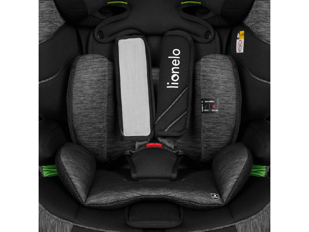 lionelo Levi One i-Size Black Grey je autosedačka v souladu s nejnovější normou R129, nazývanou také i-Size. Pro splnění nejvyšších standardů bezpečnosti je opěrka hlavy vyztužena pěnou Memory Foam, která dokonale tlumí přetížení. Zase široké sedadlo s redukční vložkou a nastavení opěrky hlavy do 10 poloh přispívá k tomu, že autosedačka roste společně s dítětem a přizpůsobuje se tak jeho potřebám. Levi One i-Size je určena pro děti s výškou 76–150 cm a je určena pro montáž FWF neboli po směru jízdy. Autosedačka se upevňuje pomocí bezpečnostních pásů vozidla, díky čemuž je vhodná do každého modelu automobilu. Pro snadnější skladování je také možné odejmout opěradlo autosedačky.