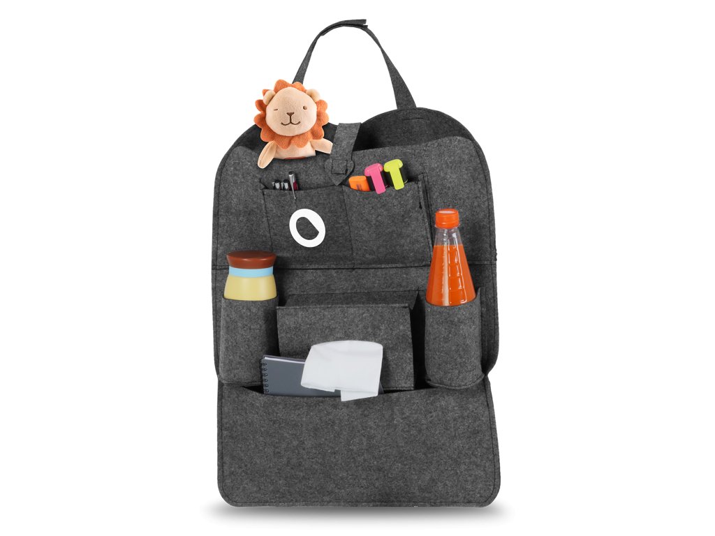 Plstěný organizér Lionelo je vybaven 7 kapsami různých velikostí, do kterých můžete uložit věci, které potřebujete na cestách. Můžeme tak zajistit nejen pořádek a pohodlí, ale také bezpečnost jízdy – v případě prudkého brzdění nepředstavují předměty ukryté v přihrádkách žádnou hrozbu.