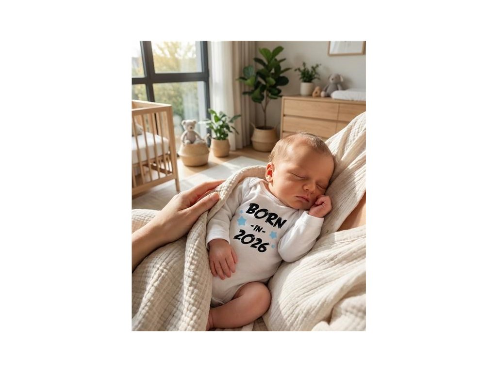 Dětské body s potiskem New Baby BORN IN 2026 blue 68 (4-6m)