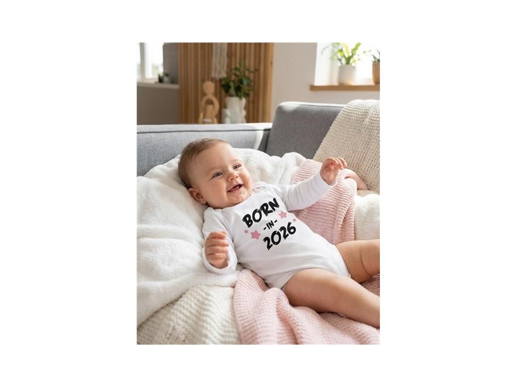 Dětské body s potiskem New Baby BORN IN 2026 pink 62 (3-6m)
