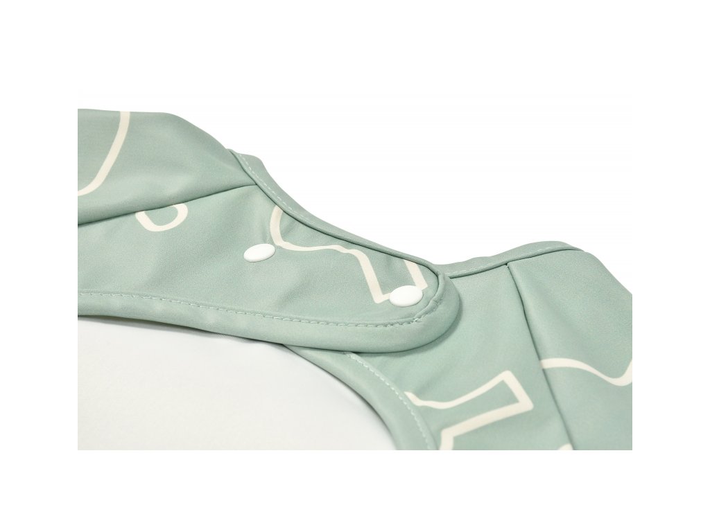 Bryndák s odnímatelnými rukávy chrání dětské oblečení při stolování i výtvarných aktivitách. Rukávy lze snadno oddělit i znovu přidělat. Rozkládací kapsa na přednní straně pomáhá zachytávat drobečky i kapky při dětském stolování, když kapsu např. při malování nepotřebujete, stačí ji nechat složenou. Nastavitelné zapínání na druky za krkem umožňuje snadné oblékání i přizpůsobení bryndáku velikosti dítěte. Elastické zakončení rukávů poskytuje pohodlí při nošení. Bryndák je vyroben z příjemného, měkkého materiálu, který při znečištění stačí otřít vlhkou houbičkou a je možné jej i prát v pračce. Vhodné pro děti od 4 měsíců do 4 let.Doplňkové parametry