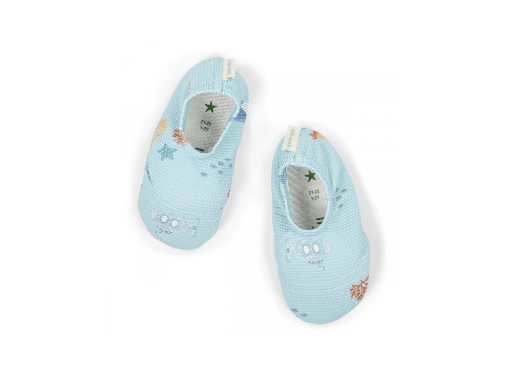 Boty do vody z pružného materiálu s krásným potiskem ochrání nožičky vašeho dítěte před horkým plážovým pískem i před uklouznutím u bazénu. Elastické provedení usnadňuje nazouvání i vyzouvání botiček. Složení: 94% recyklovaný nylon, 6% spandex Možno prát v pračce na 30°C. Po každém použití propláchněte v čisté studené vodě.Doplňkové parametry