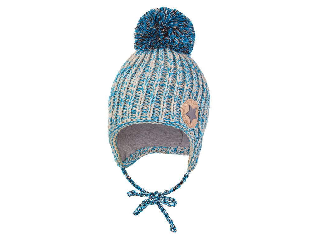 Čepice pletená zavazovací bambule LA Outlast ® - modrý melír Velikost čepic: 3 | 42-44 cm