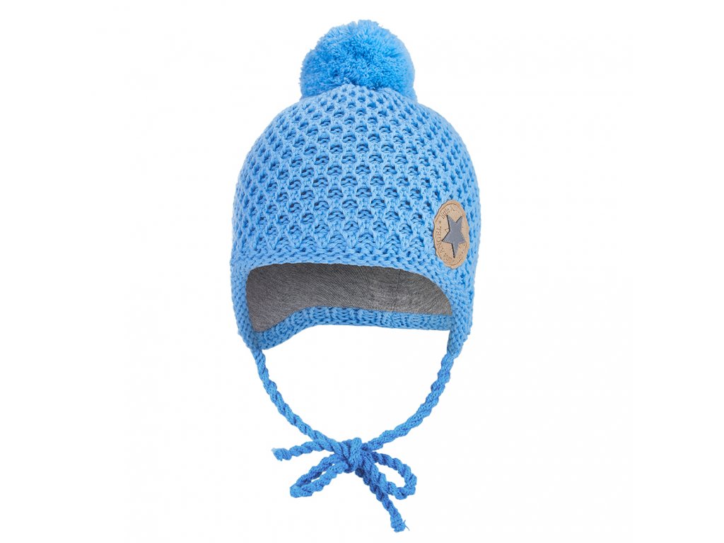 Čepice pletená zavazovací drobný vzor bambule Outlast® - sv.modrá Velikost čepic: 2 | 39-41 cm