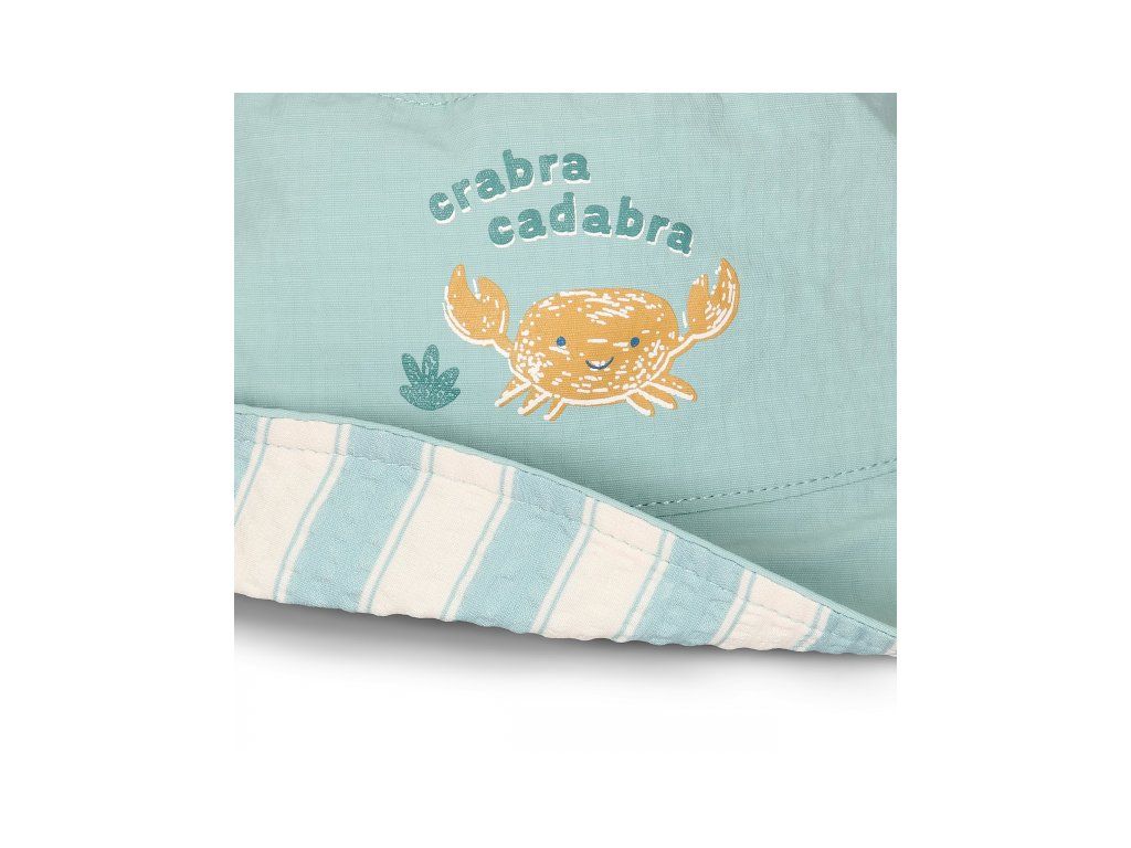 Oboustranný klobouček s krásným potiskem chrání vaše dítě před sluncem při koupání u moře i doma na zahradě. Ať už vaše děti milují skákání ve vlnách, koupání v bazénu nebo si rády staví hrady z písku, s touto čepičkou si mohou bezstarostně užívat celý den. Oboustranné provedení nabízí na výběr dva designy klouboučku - jednobarevný s potiskem a pruhovaný. Velikost 1 je určena pro děti od narození do cca 1 roku. Složení: 94% recyklovaný nylon, 6% spandex Při pobytu na slunci používejte pro dítě ochranné opalovací krémy. Možno prát v pračce na 30°C. Balení obsahuje 1 klobouček.Doplňkové parametry