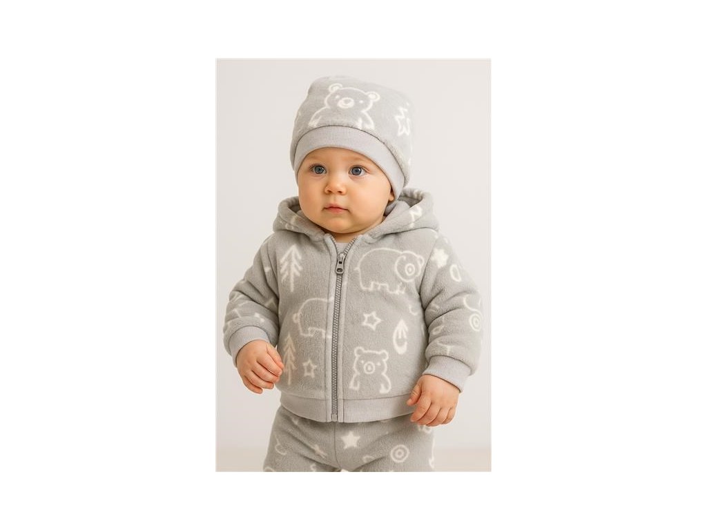 Zimní kojenecká čepička s šátkem na krk New Baby Teddy bear šedá 68 (4-6m)