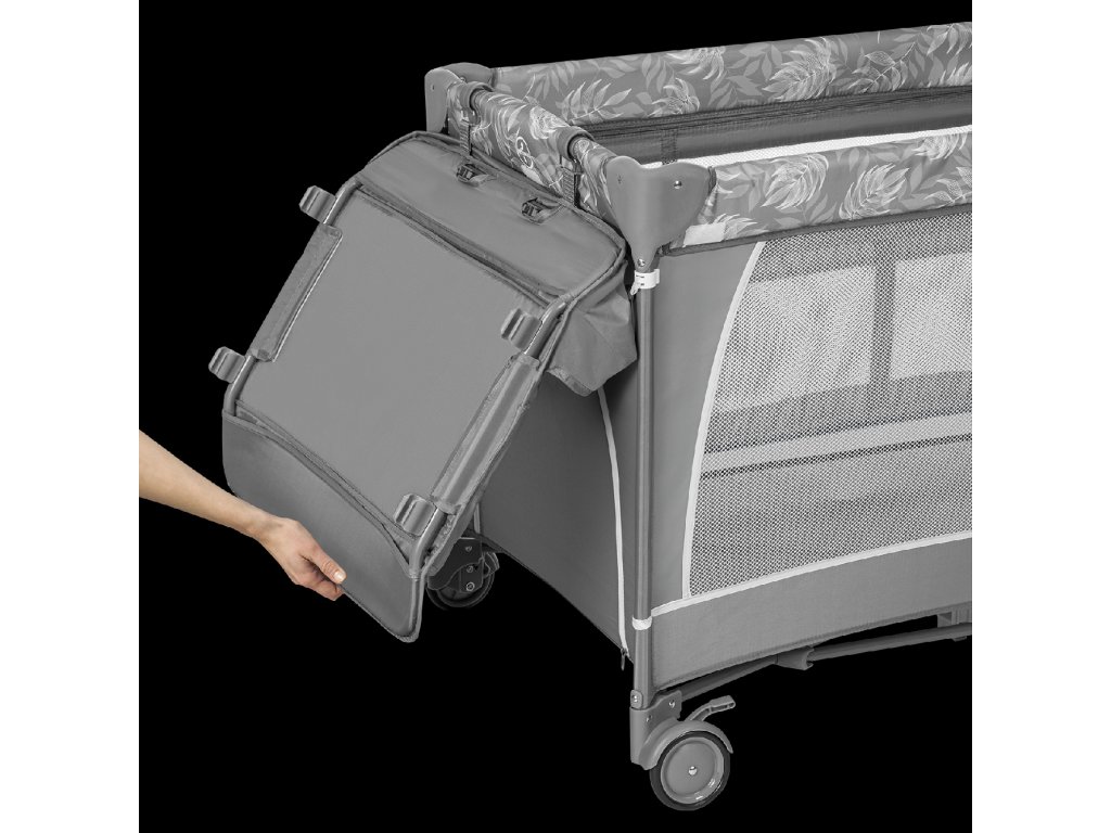 - Součástí balení je hrazda s interaktivními hračka, přebalovací pult s organizátorem, vložní lůžko, matrace, taška na postýlku