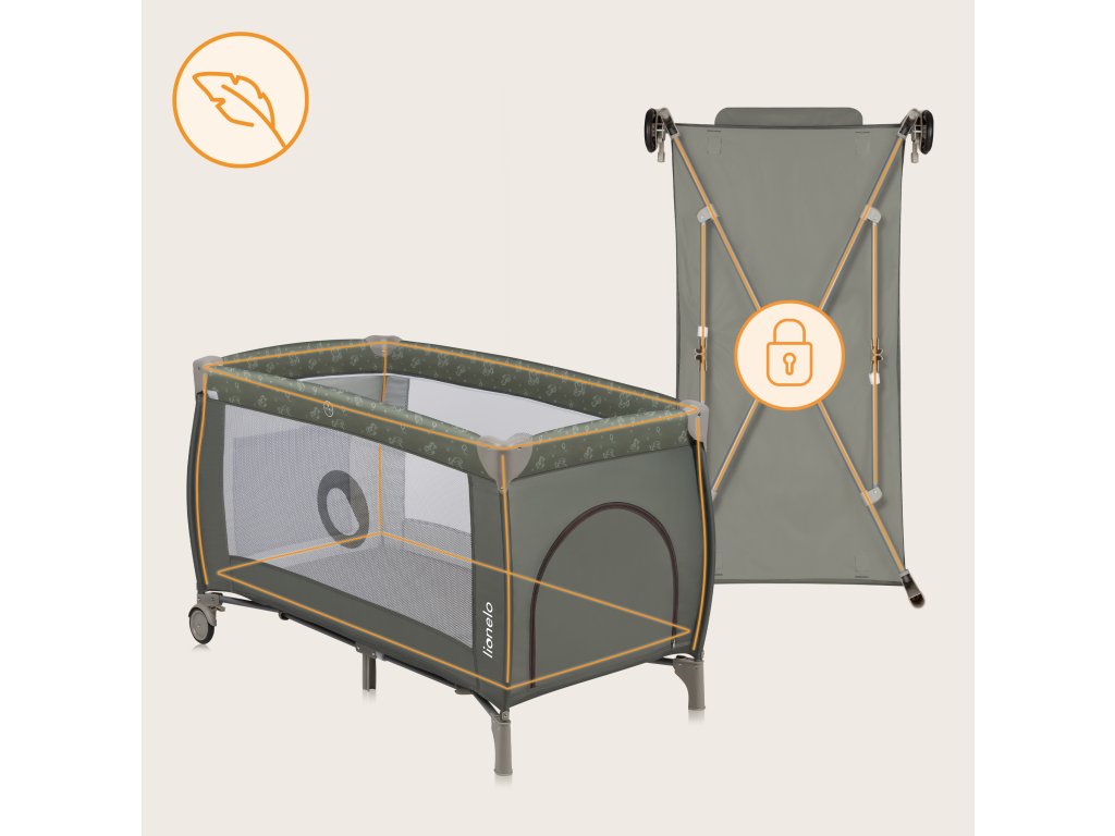Součástí je cestovní skládací matrace, kterou lze použít i do vložného lůžka (rozměr 120x60 cm). Vložné lůžko je také součástí balení
