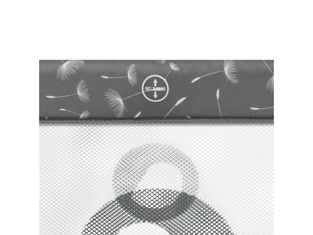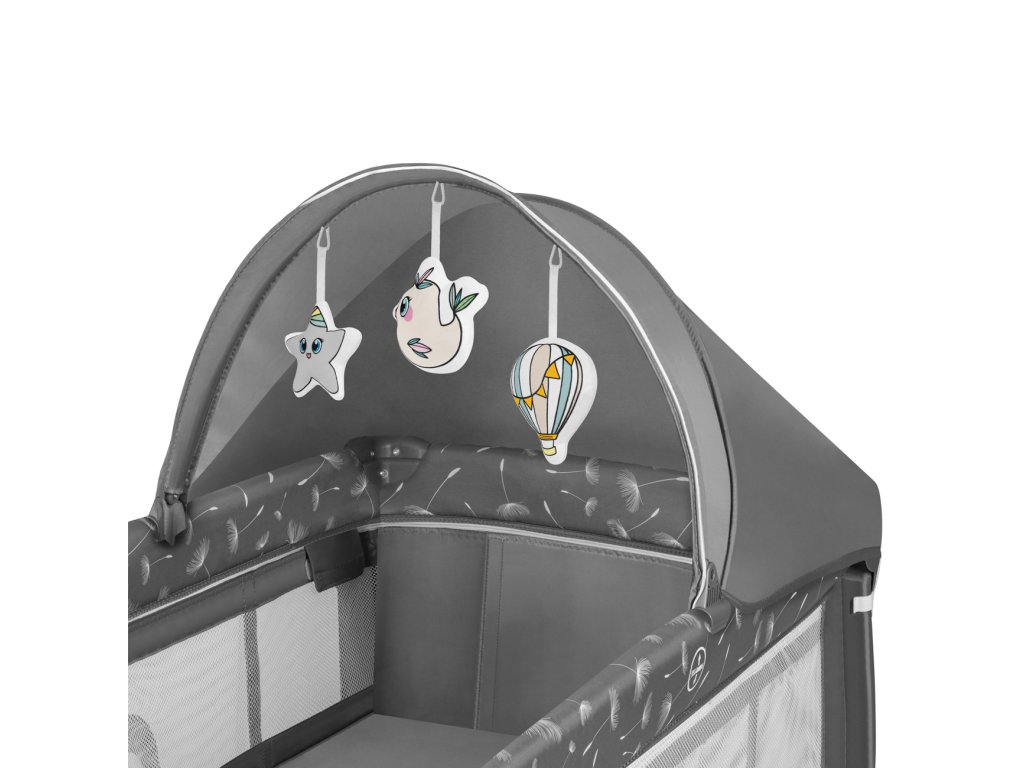 Součástí je velká moskytiéra a hrazdička s plyšovými hračkami a stříška