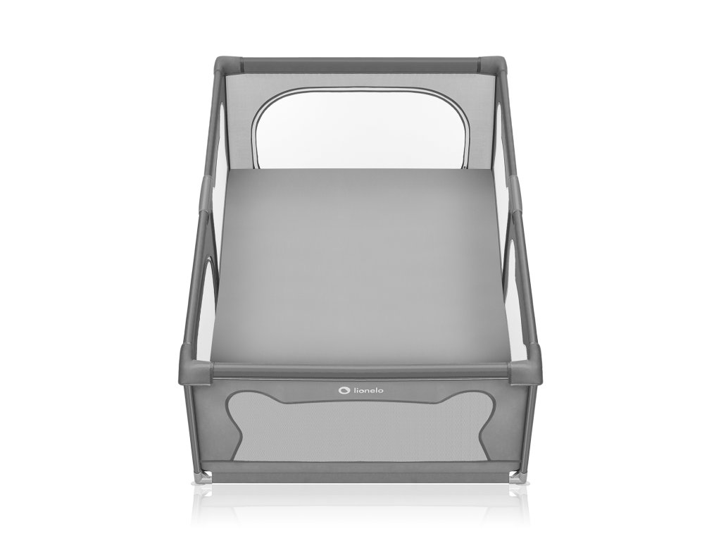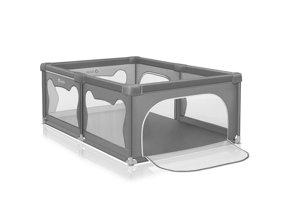 Vysoké bočnice ohrádky jsou vyrobeny ze síťoviny, která nejen zajišťuje cirkulaci vzduchu, ale také zaručuje dobrou viditelnost, díky čemuž může rodič sledovat, co se děje s dítětem. Měkké bočnice minimalizují riziko možných nárazů a vzor připomínající medvědí uši povzbuzuje děti k samostatnému hraní v ohrádce.
