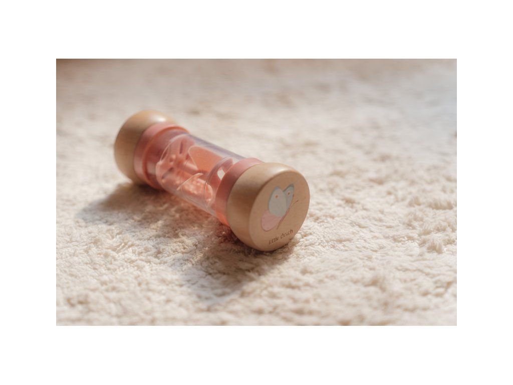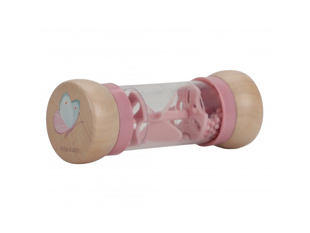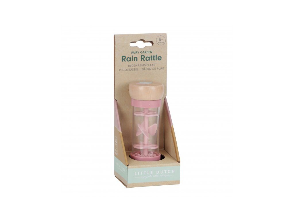 Chrastítko v krásném provedení v kombinaci dřeva a plastu. Korálky i otočná vrtule uvnitř chrastítka při pohybu jemně chrastí. Tvar hračky umožňuje snadné uchopení dětskými ručičkami. Hračka je součástí designové kolekce hraček a doplňků Little Dutch Fairy Garden inspirované životem na zahradě. Vyrobeno z dřeva certifikovaného FSC. Rozměry: 14 x 5,4 x 5,4 cm Vhodné pro děti od 3 měsíců.Doplňkové parametry