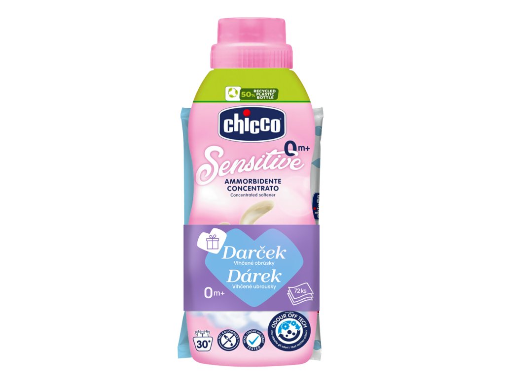 Chicco aviváž osvěžuje a zjemňuje všechny dětské věcičky miminka bez podráždění jeho citlivé pokožky. Vlastnosti: - hypoalergenní, neobsahuje barviva a je dermatologicky testováno na citlivé pokožce - koncentrované složení s "zápach odstraňující" technologií, která zanechává oblečení čisté a jemně navoněné - dostupné v 3 vůních: Sladký pudr, Květinové objetí a Jemný dotek Standardní počet praní: 30. Objem: 750 ml. UPOZORNĚNÍ! Nepolykejte. Držte mimo dosah dětí. Nepřekračujte doporučené použití. Nenalévejte přímo na oděv. Zamezte styku s očima. V případě kontaktu s očima je ihned omyjte dostatečným množstvím vody a poraďte se se svým lékařem. CHEMICKÉ SLOŽENÍ: (Reg. EC 04/648) - Mezi %5 a %15: kationtové tenzioaktivní látky. Méně než %5: parfém. Vlhčené parfémované ubrousky Chicco čistí, osvěžují a hydratují citlivou dětskou pokožku. Složení s 97% vody a výtažkem z lotosového květu je ideální při přebalování i k čištění dětských rukou a obličeje. Vlastnosti: - 0% alkoholu a mýdla - 97% vody - bez plastů - testováno na citlivé pokožce - s lotosovou vodou - ideální od narození Balení obsahuje 72 ks. Složení: AQUA (WATER), NELUMBO NUCIFERA ROOT WATER, ALLANTOIN, POLYSORBATE 20, 1,2-HEXANEDIOL, SODIUM BENZOATE, ETHYLHEXYLGLYCERIN,BENZOIC ACID, PARFUM (FRAGRANCE), POTASSIUM SORBATE, SODIUM GLUCONATE, LACTIC ACID. Kontakt dodavatele: ARTSANA SPA Via S. Catelli 1 - 22070, Grandate (CO), Italy, www.chicco.com, +39 800 188 1259Doplňkové parametry