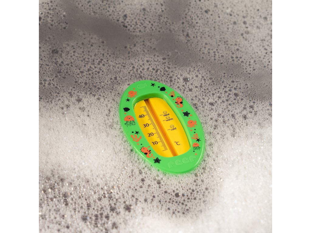 Bezpečná zábava při koupání Koupání je pro děti velkou zábavou, ale správná teplota vody je zásadní pro jejich bezpečnost i pohodu. Pokud je voda příliš studená, děti snadno prochladnou, zatímco příliš horká voda může způsobit bolestivé opaření citlivé pokožky. Proto je velmi důležité kontrolovat teplotu vody před i během koupele. Koupací teploměr reer rodičům umožňuje rychle a snadno zjistit, zda má voda ideální teplotu pro jejich miminko nebo batole. Snadné měření teploty - díky čitelné stupnici Teploměr má přehlednou stupnici, díky které lze okamžitě vyčíst teplotu vody. Pro ještě snadnější kontrolu jsou na stupnici vyznačeny symboly/emotikony, které ukazují, zda je voda příliš studená, horká, nebo má optimální teplotu. Rodiče tak mají jistotu na první pohled. Kvalita a bezpečnost - testováno podle přísných kritérií Aby byla zajištěna maximální ochrana dětí, produkty reer procházejí přísnými testy. Výrobek není kontrolován pouze interně, ale také nezávislými institucemi. Teploměr je testován podle přísné normy DIN EN 71-1 (bezpečnost hraček) a i dalších specifikací. To zaručí maximální bezpečnost i pro děti mladší 36 měsíců. Tyto testy potvrzují, že splňuje speciální požadavky pro hračky určené dětem do 36 měsíců. Při výrobě jsou používány pouze materiály bez škodlivých látek a změkčovadel – bez rtuti, PVC a BPA. Bezpečné koupání - nerozbitný a bez ostrých hran Díky robustnímu provedení z nerozbitného plastu, pružnému kapilárnímu držáku a ultrazvukovému svařování se nemohou uvolnit žádné malé části, které by mohly být pro děti nebezpečné. Tvar je navíc navržen tak, aby neměl žádné ostré hrany a nemohl dítě poranit. Design přizpůsobený dětem - veselé motivy a jasné barvy Veselé motivy a jasné barvy přinášejí dětem radost a teploměr se díky voděodolnému provedení vždy udrží na hladině. Kromě měření tak může sloužit i jako plovoucí hračka. Rychlé a snadné osušení- díky integrovaným vzduchovým kanálkům Na zadní straně jsou zabudované vzduchové kanálky, které umožňují rychlé schnutí a zabraňují vzniku plísní i nepříjemného zápachu. Nejrychleji teploměr vyschne, pokud se postaví kapilárou směrem ke zdi. Detaily produktu: - pro bezpečné koupání - čirá stupnice - značka pro ideální teplotu koupele - bez rtuti, bez BPA - měřicí rozsah:Doplňkové parametry