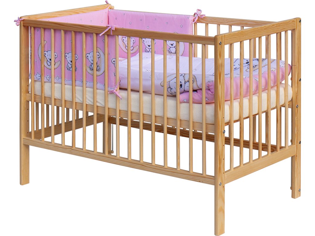Dětská postýlka s kompletní soupravou povlečení a doplňků Scarlett Toro Komplet obsahuje1. Dětská dřevěná postýlka 120 x 60 cm - přírodní, masiv borovice, 3 vyndavací příčky, 6 polohy roštu, nohy postýlky jsou předvrtány pro případné nasazení koleček2. Matrace 120 x 60 x 6 cm, PUR pěna, potah - bavlna3. Potah na peřinku120 x 90 cm - 100% bavlna4. Potah na polštářek 60 x 40 cm - 100% bavlna5. Výplň peřinky120 x 90 cm - polyester, potah mikrofibra6. Výplň polštářku 60 x 40 cm - polyester, potah mikrofibra7. Ochrany limec 180 x 30 cm potah bavlna, výplň polyester8. Prostěradlo 120 x 60 cm - bavlnaDoplňkové parametry