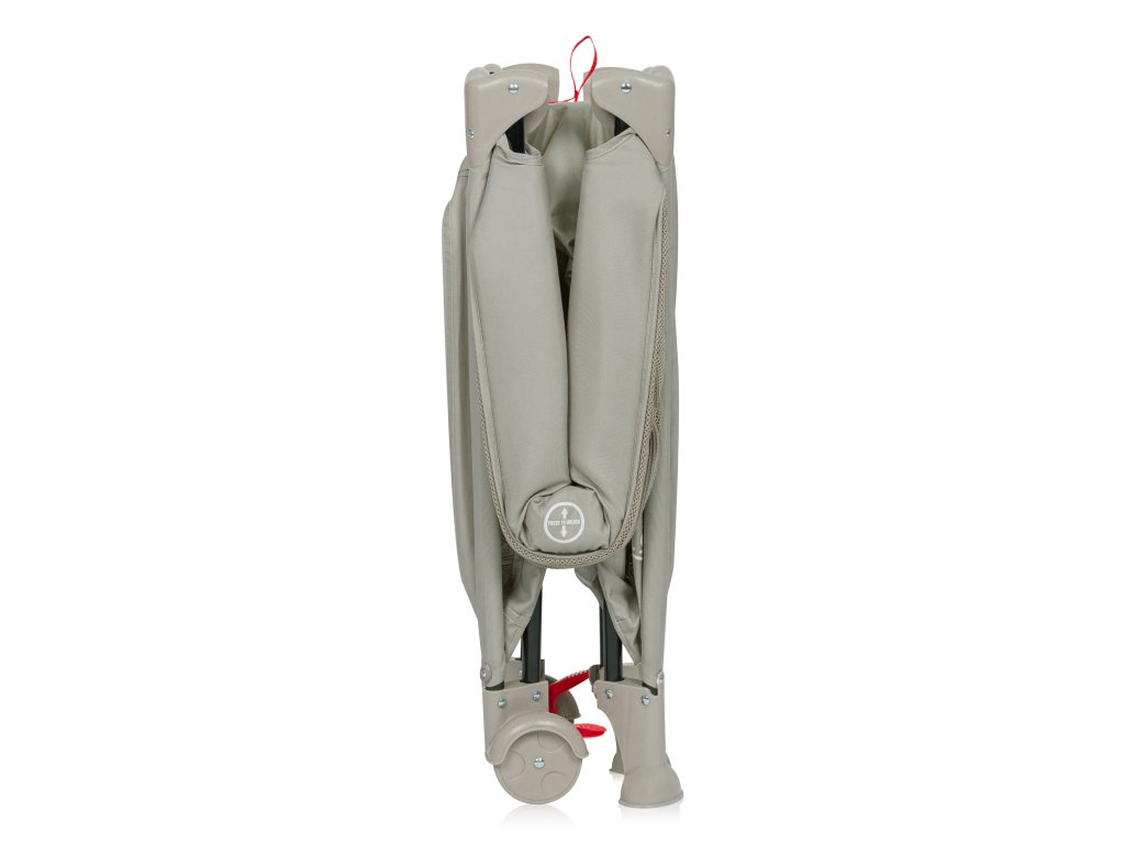 2 kolečka s brzdou usnadňují přemístění. Stačí lehce nadzvednout postýlku na jedné straně, aby ji bylo možné přesunout. S ohledem na své rozměry se snadno vejde do dveří a užších průchodů.