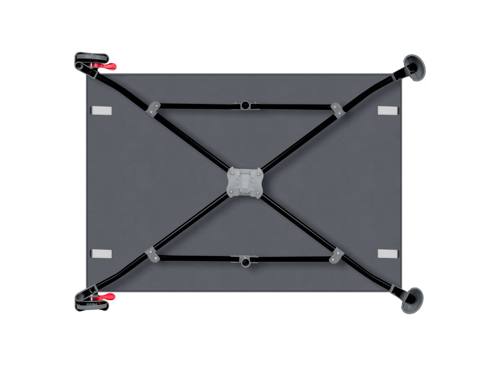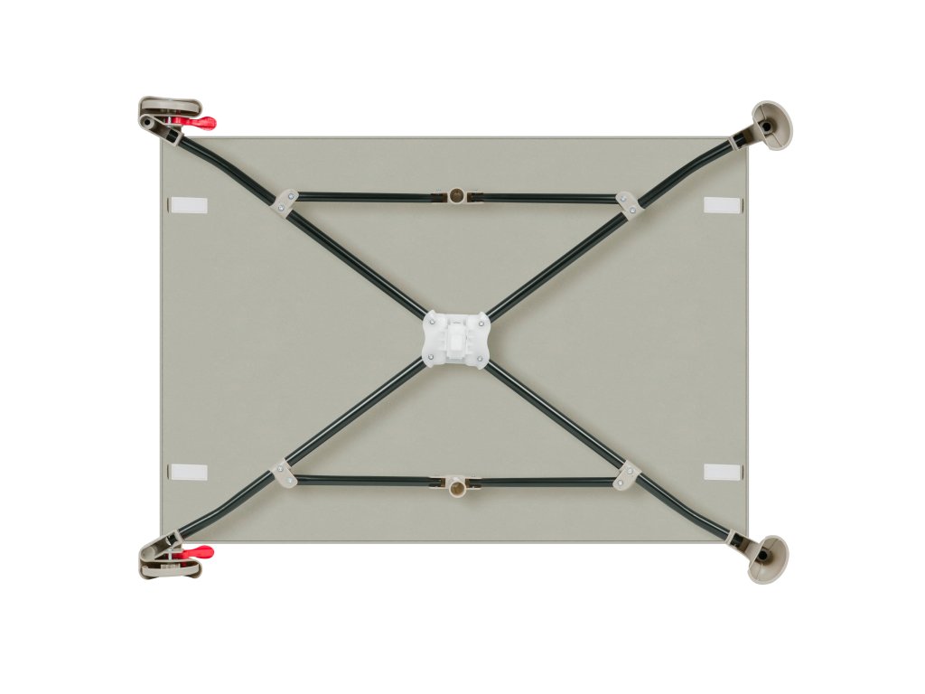 Stabilitu postýlky a ohrádky zajišťuje pevná (ale lehká) ocelová konstrukce. Potah byl vyroben z pevného a odolného proti potřísnění materiálu Oxford 300D.