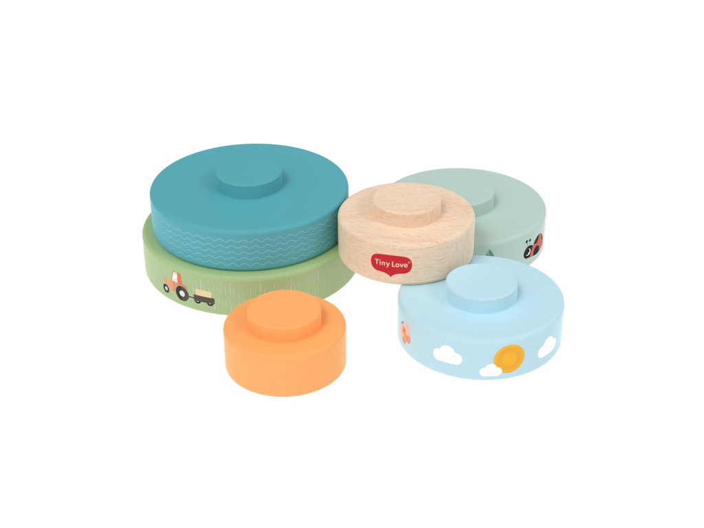 Dřevěné nasazovací kroužky Tiny Love nabízí různé možnosti hraní - děti je mohou nasazovat a stavět do věže, třídit podle velikosti, kutálet s nimi a postupně objevovat a rozlišovat barvy, velikosti a jednoduché souvislosti. Kroužky s krásným potiskem motivů ze života na farmě jsou lehké a dobře se drží i malými dětskými ručičkami. Hračka přirozeně rozvíjí jemnou motoriku, koordinaci ruka–oko i první logické myšlení. Hračka pomáhá rozvíjet jemnou motoriku, jednotlivé smysly, emoční inteligenci i kreativitu dítěte. 6 barevných dřevěných kroužků je vyrobeno z kvalitního dřeva z odpovědně obhospodařovaných lesů. Rozměry: 13 x 10 x 10 cm Vhodné pro děti od 6 měsíců.Doplňkové parametry