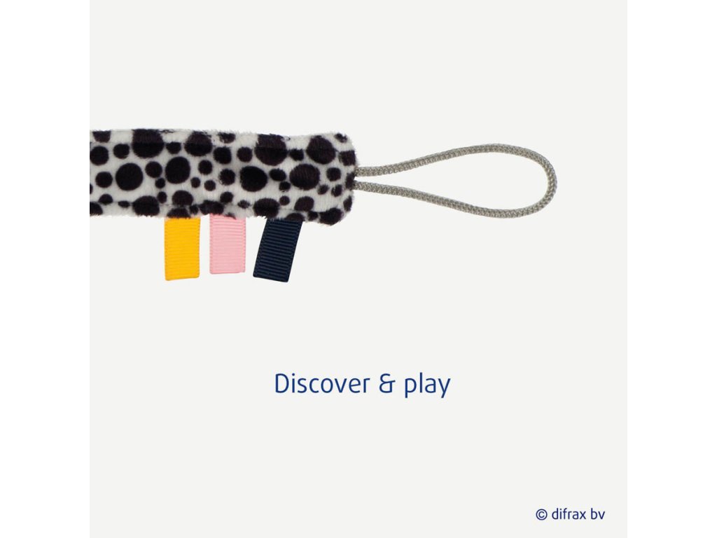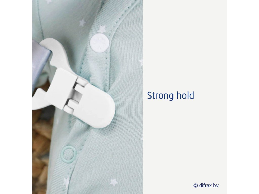 S klipem je dudlík vždy po ruce, zůstává čistý a lehce se neztratí. Plyšový klip Difrax je praktický a bezpečný a dudlík se na něj snadno upevní. Opačnou stranu lze pak připevnit jednoduchým zakliknutím k oblečení vašeho miminka. Rozmanité látkové střapečky navíc vaše miminko skvěle zabaví. Různé barevné primky k objevování. Používá se v kombinaci se všemi dudlíky Difrax. Kvalitní upevňovací klip Nepoužívejte klip na dudlík v dětské postýlce ani jako hračku. Před každým užitím klip zkontrolujte. Klip na dudlík může být prán s pracím prostředkem na 30°.Doplňkové parametry