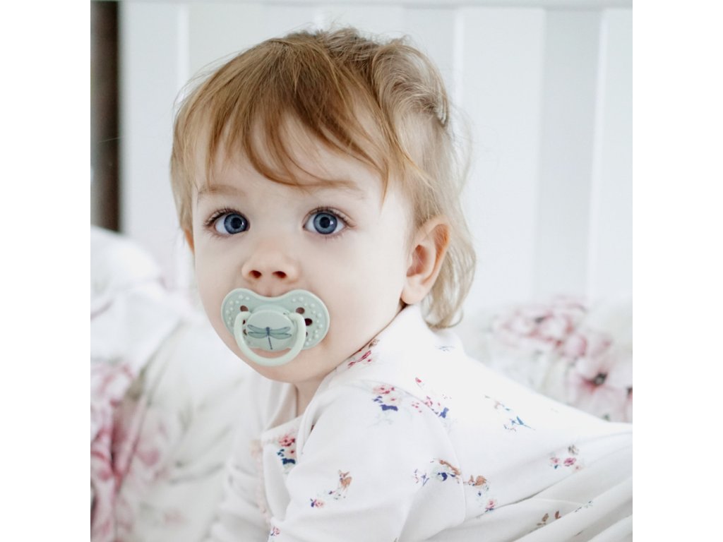 Tvarovaný vykrojený tvar štítku umožňuje dítěti volně dýchat nosem. Je vyrobený z bezpečného materiálu, který neobsahuje BPA Jedinečný okraj štítku je vyroben ze zdravotnického materiálu, je příjemný na dotek a zabraňuje otlačení dudlíku.