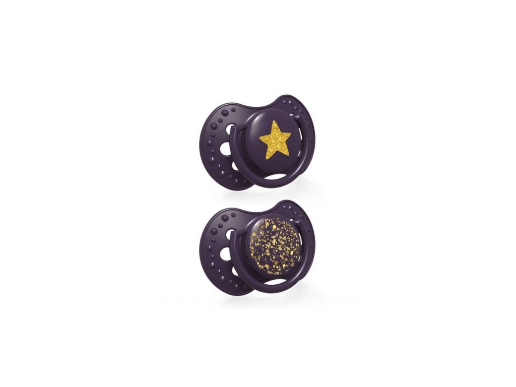 LOVI Dudlík silikonový dynamický Stardust 0-3m 2ks fialový