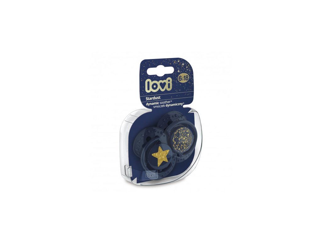 Stardust je tady! Jedinečná, designově nepřehlédnutelná, prémiová kolekce od LOVI. Unikátní design kolekce Stardust - zdobení v podobě zlatého třpytu, který připomíná hvězdné nebe. Kolekce se pyšní dynamickým dudlíkem LOVI , který byl vytvořen ve spolupráci s neurologopedy s cílem zajistit přirozený a zdravý vývoj zubního patra, zubů a dásní dítěte. Gumička dudlíku se dynamicky přizpůsobuje sání dítěte, nenarušuje sací reflex. Neobsahuje BPA. V balení 2 ks.VŠICHNI JSME STVOŘENI Z HVĚZDDynamický dudlík LOVI byl vytvořen ve spolupráci s neurologopedy s cílem zajistit přirozený a zdravý vývoj zubního patra, zubů a dásní dítěte. Silikonový symetrický dynamický dudlík LOVI byl klinicky testován.Všechny dudlíky LOVI jsou vyrobeny ze silikonu, který je bez chuti a bez zápachu. Silikonové dudlíky mají delší životnost a lépe se udržují v čistotě.Unikátní symetrická dynamická gumička se velmi dobře odvzdušňuje a nedeformuje zubní patro dítěte.zabraňuje reflexu kousání do dudlíkuumožňuje přirozené polykání slinpodporuje zdravý vývoj řeči a formování skusunedeformuje zubní patro dítětevelmi dobře se odvzdušňujeDynamická gumička je vyrobena z nestejnorodých vrstev silikonu, takže se prodlužuje a smršťuje v závislosti na rytmu sání dítěte. Symetrický tvar připomíná matčinu bradavku. Tvar gumičky také umožňuje vložení dudlíku do úst dítěte libovolným způsobem (nemá určenou vrchní a spodní stranu). Tvarovaný vykrojený tvar štítku umožňuje dítěti volně dýchat nosem. Je vyrobený z bezpečného materiálu, který neobsahuje BPA. Jedinečný okraj štítku je vyroben ze zdravotnického materiálu, je příjemný na dotek a zabraňuje otlačení dudlíku.Otvory ve štítku umožňují cirkulaci vzduchu, eliminují hromadění slin za štítkem a tím předcházejí podráždění citlivé dětské pokožky.Kroužek v dudlíku pevně drží, usnadňuje držení a podávání dudlíku. Můžete na něj připnout řetízek nebo šňůrku.Dudlík je z hygienických důvodů opatřen plastovým krytem.Plastová krabička slouží jako pouzdro na hygienické uchovávání dudlíků. Dudlíky LOVI získaly ocenění konečných spotřebitelů:Dudlíky jsou dodávány v mnoha moderních barevných designech.Sada obsahuje:2 ks dynamických dudlíků LOVI 2 ks plastových krytů na dudlík1 ks plastové krabičkyNávod k obsluze:Před prvním použitím dudlík z hygienických důvodů sterilizujte ve vařící vodě po dobu asi 5 minut. Po vychladnutí vytlačte zbylou vodu z dudlíku. Před každým použitím dudlík umyjte v teplé vodě. Nepoužívejte žádné chemické desinfekční přípravky! Vysoká koncentrace těchto přípravků mohou poškodit plastové díly dudlíku. Nikdy nenamáčejte dudlík do sladkých substancí ani léků - vystavujete dítě nebezpečí vzniku vady zubní skloviny. Dudlík používejte maximálně 1-2 měsíce, pak jej z hygienických a bezpečnostních důvodů vyměňte za nový. Pokud dudlík zapadne dítěti do úst, NEPROPADEJTE PANICE - dudlík je konstruován tak, že jej dítě nemůže spolknout a vy jej v takových případech můžete bezpečně vyjmout. Dudlík vyjímejte co možná nejopatrněji. Dudlík uchovávejte v čistém, suchém a uzavřeném pouzdru. Nedoporučujeme používat dudlík pro dítě starší 3 let. Upozornění! Důležité pro zdraví a bezpečnost vašeho dítěte! Před každým podáním dítěti zkontrolujte kvalitu dudlíku. Věnujte dudlíku zvýšenou pozornost poté, co dítěti vyrostou první zoubky. Vyzkoušejte kvalitu gumičky důkladným natažením všemi směry. Při prvních známkách poškození dudlík ihned vyhoďte a již dále nepoužívejte. Používejte pouze takové držáky dudlíku, které odpovídají požadavkům normy EN12586. Nikdy nepřipevňujte dudlík na různé šňůrky, tkaničky či stužky oděvu. Dítě se může zadusit. Nenechávejte dudlík na přímém slunečním světle, v blízkosti tepelného zdroje nebo v desinfekčních prostředcích déle, než je doporučováno - můžete způsobit oslabení gumičky dudlíku. Sejmutý kryt uchovávejte mimo dosah dítěte - předejdete možnému zadušení.Silikonový dudlík odpovídá požadavkům:Směrnice Evropského parlamentu a Rady 2001/95/EC o obecné bezpečnosti výrobkůEN 1400 - 1 Výrobky pro péči o dítě - Dudlíky pro kojence a malé děti - Část 1: Všeobecné bezpečnostní požadavky a informace o výrobkuEN 1400 – 2 Výrobky pro péči o dítě - Dudlíky pro kojence a malé děti - Část 2: Mechanické požadavky a zkouškyEN 1400 - 3 Výrobky pro péči o dítě - Dudlíky pro kojence a malé děti - Část 3: Chemické požadavky a zkouškyDudlíky LOVI neobsahují Bisphenol A.