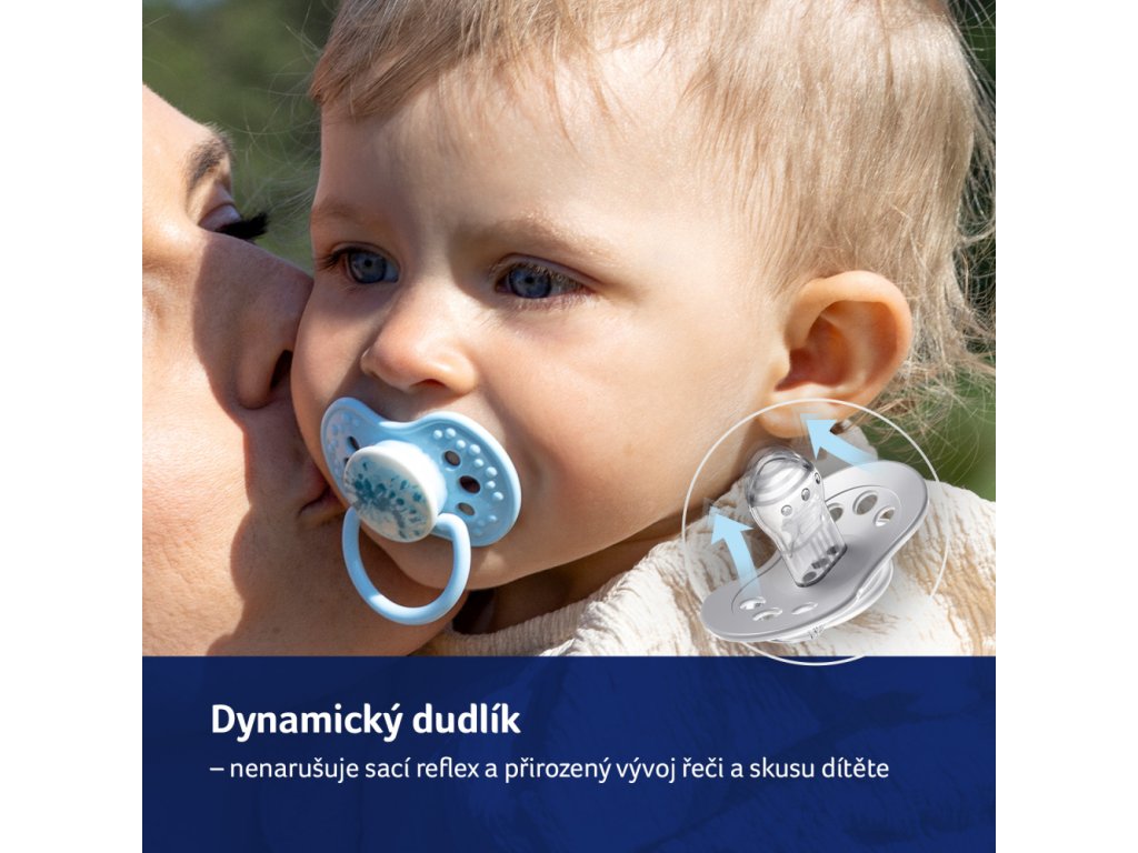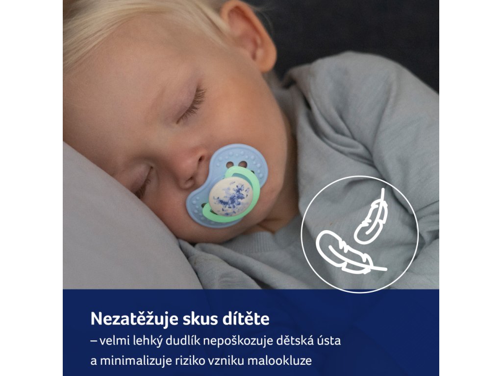 Velmi lehký dudlík, který nezatěžuje dětská ústa a minimalizuje tak riziko vzniku křivých zubů (malookluze).