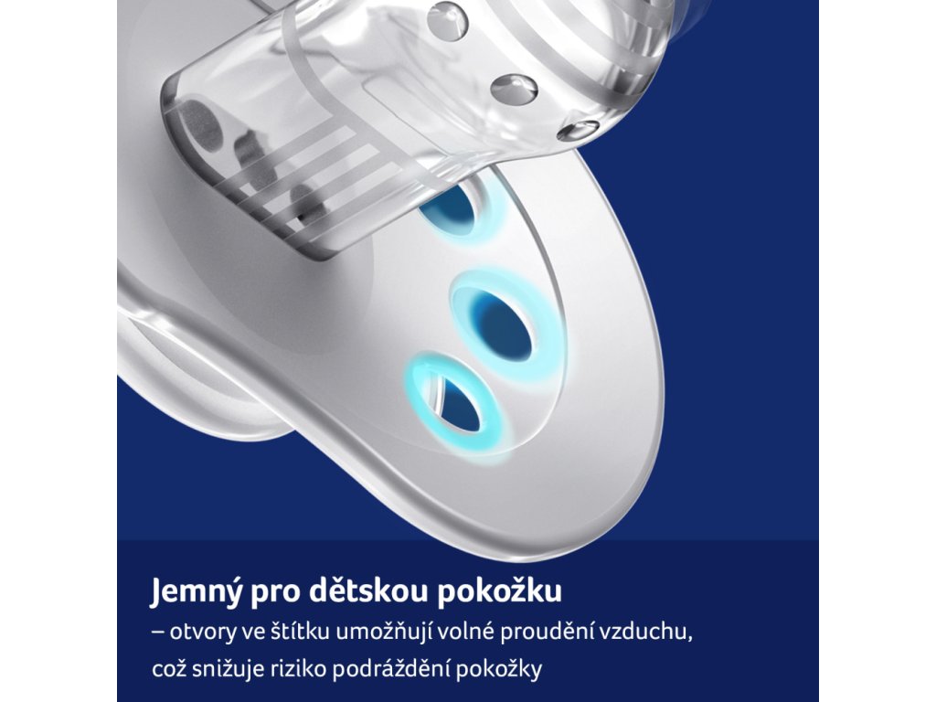 Otvory ve štítku umožňují dětské pokožce volně dýchat a nedráždí tak pokožku.