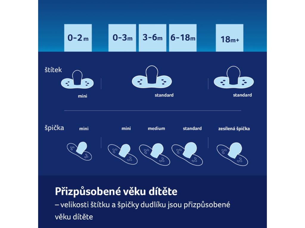 Špička je vyrobena z odolného silikonu, který se během používání nedeformuje v ústech dítěte.