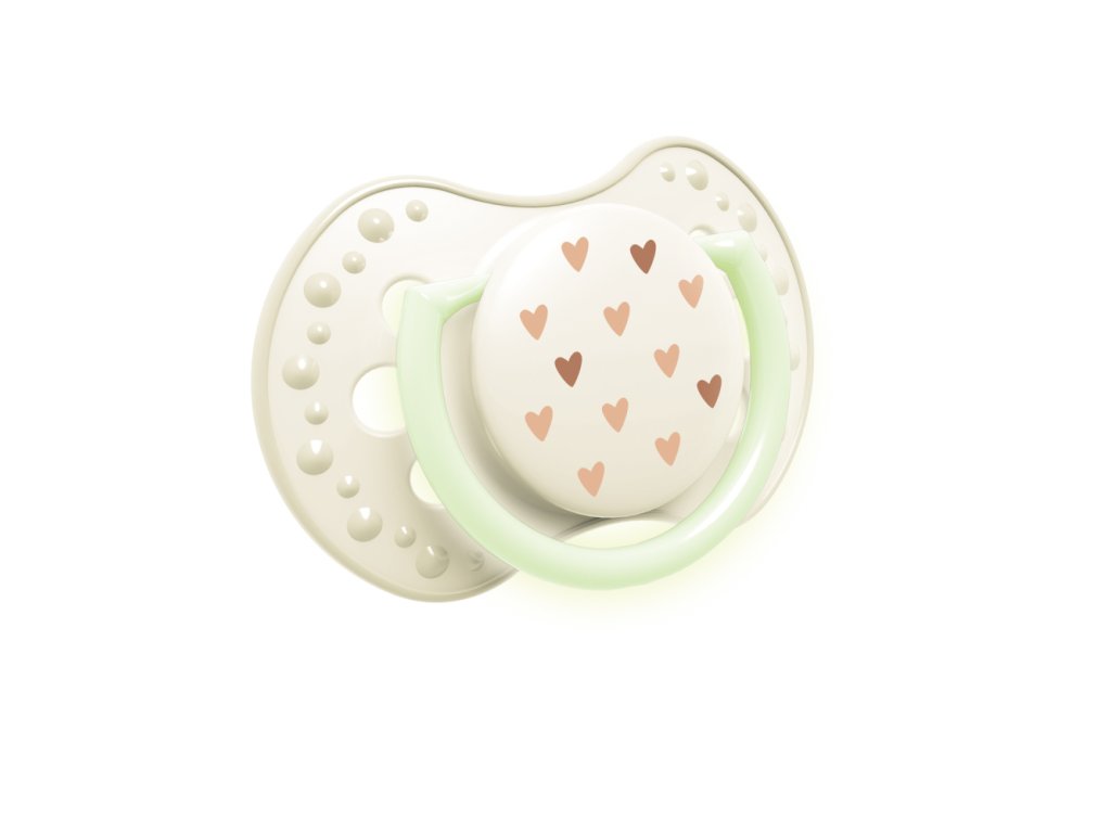 Dudlík má úchytku svítící ve tmě, což usnadňuje jeho hledání v noci.