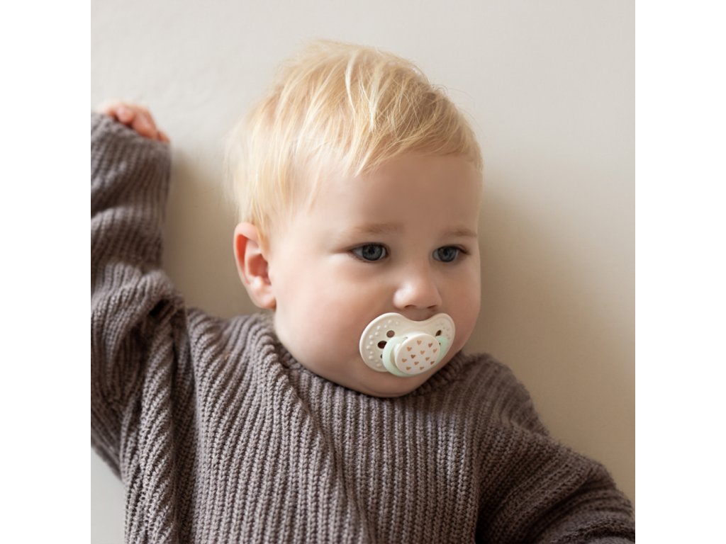 Silikonová špička dudlíku je zesílená a tím odolnější proti kousání. Praktické v období intenzivního vývoje zubů a dásní.