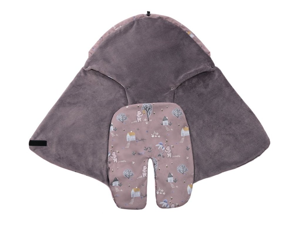 Zavinovačka je velmi praktický výrobek, který si našel mnoho spokojených zákazníků. Z vnější strany je vyrobena ze softshell materiálu a z vnitřní strany z plyše. Výhodou funkčního materiálu softshell je odolnost proti vodě a větru, odvádí pot a dokonale zahřeje. Díky rozepínání zadní části zavinovačky na druky, lze zavinovačku použít u všech typů 5ti bodového upínání bezpečnostních pásů. Je vhodná pro děti 0-12 měsíců, délka 90 cm ale umožňuje i delší užívání v závislosti na výšce dítěte.