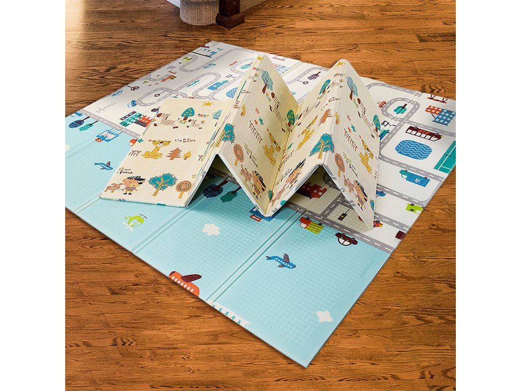 SKLÁDACÍ HRACÍ PODLOŽKA XL Veselá skládací podložka, která nabízí mnoho využití. Podložku je možné využít na hraní, cvičení, odpočinek ať už doma nebo na cestách. Veselá podložka má oboustranný potisk, se kterým si děťátko užije spousty zábavy. Může poznávat zvířátka, barvy, dopravní prostředky. Strana s autíčky může sloužit jako hrací deska pro autíčka, na straně se zvířátky můžete zase stavět malou zoo. Veselé postavičky a něžné barvy rozvíjí dětskou fantazii a podporují rozvoj zrakového smyslu. Podložka je vyrobena z XPE pěny, což je velmi lehký a zároveň velmi pružný a pevný materiál. Na potisk byl použit inkoust z rostlinného oleje, aby v každém ohledu výrobek odpovídal vysokým bezpečnostním potřebám děťátka. Podložka je dodávána v praktické cestovní tašce, do které si svou oblíbenou podložku můžete jednoduše složit a vzít s sebou ať už na dovolenou nebo k babičce.VLASTNOSTI:- skládací hrací podložka oboustranná (2 motivy)- rozměr : 120 x 180 x 1 cm- vyrobeno z XPE pěny s vysokou hustotou XPE pěnaVelmi lehký, recyklovatelný materiál. Zmírňuje opakující se otřesy a nárazy.> Povrch je hladký, pevný a zároveň pružný. - Potisk inkoustem z rostlinného oleje- Bez BPA, netoxický- Velmi kompaktní po složení- Přepravní taška PARAMETRY : Po sestavení : 120 x 180 x 1 cmVIDEO: https://www.youtube.com/watch?v=VpG9GgGN2t4CZ) DŮLEŽITÉ: PŘED POUŽITÍM SI POZORNĚ PŘEČTĚTE PŘILOŽENÉ INFORMACE K POUŽITÍ, ABYSTE SE VYHNULI MOŽNÝM NEBEZPEČÍM PŘI POUŽÍVÁNÍ VÝROBKU A NÁVOD USCHOVEJTE PRO PŘÍPADNÉ DALŠÍ POUŽITÍ. V souladu s normou EN71.Distributor pro CZ&SK / Distribútor pre CZ&SK: Bohemia Baby s.r.o., Lidická 481, 273 51 Unhošť, email: sales@bohemiababy.cz / www.bohemiababy.cz / www.b2b.bohemiababy.cz / www.bohemiababyshop.czVýrobce / Výrobca: ESTAR ASALVO S.L., P. I. Hacienda Dolores, C/Dos, 2, 41500 Alcalá de Guadaíra · Sevilla · España · info@asalvo.com · www.asalvo.comDoplňkové parametry