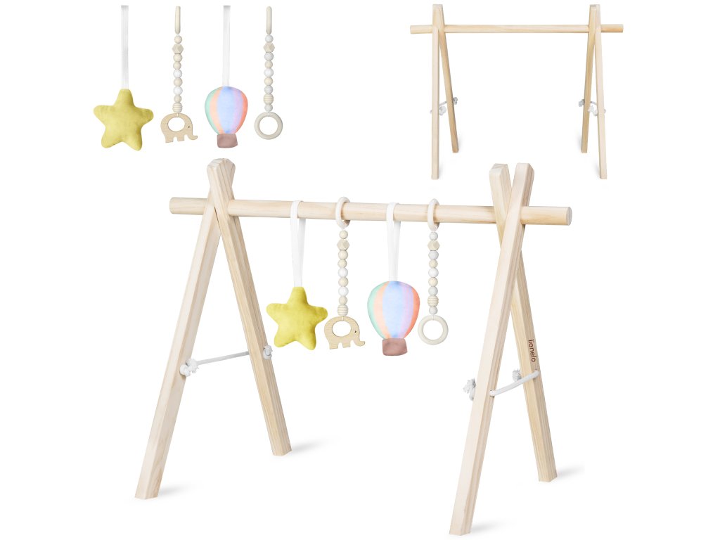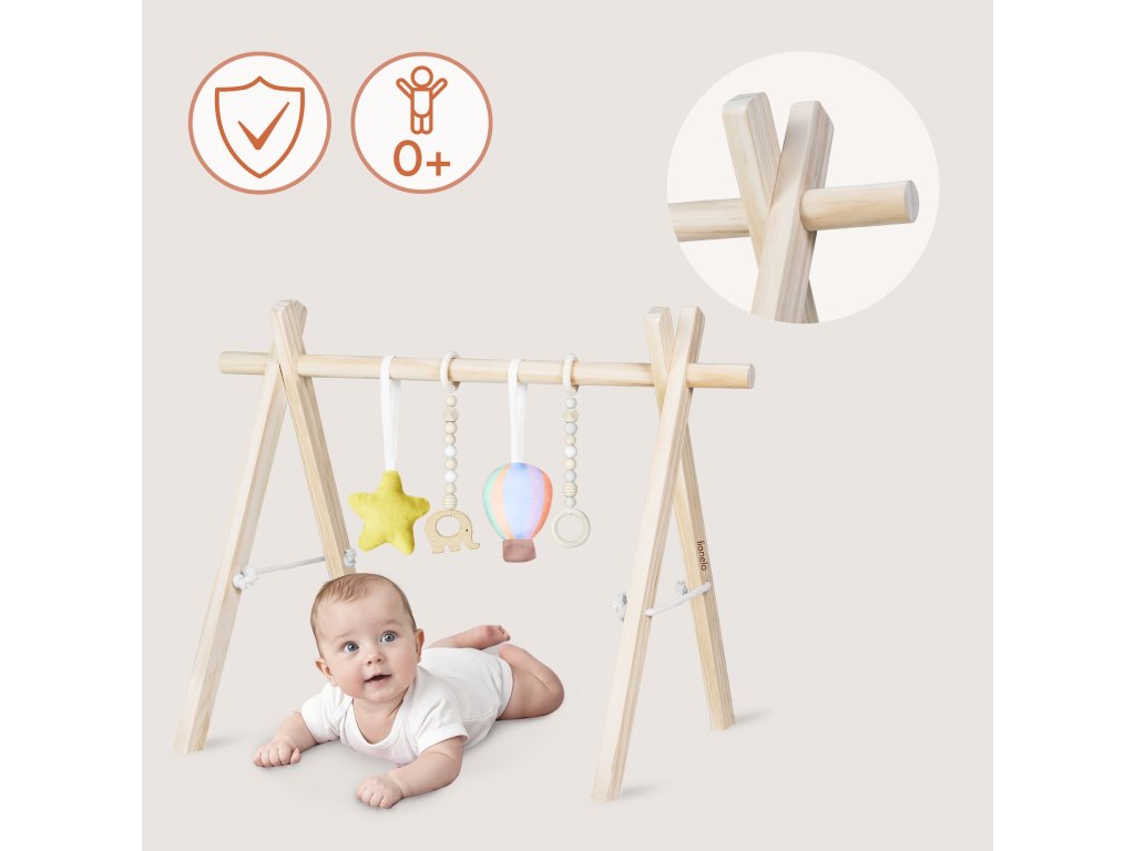 Anis je hrazdička, která podporuje radostnou hru miminka už od prvních dnů života (0+) a splňuje evropské bezpečnostní normy. Skládá se z dřevěných prvků s hladkými, pečlivě obroušenými hranami. V konstrukci je použito kvalitní borovicové dřevo, které kombinuje odolnost s přírodním charakterem.