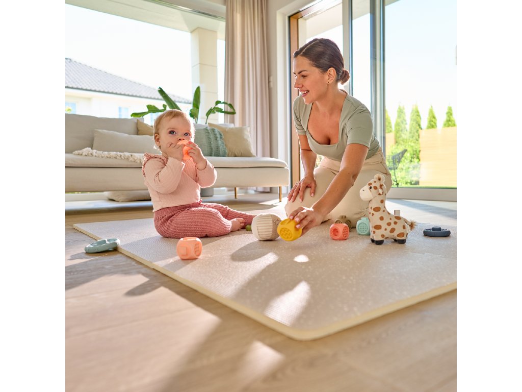 Podložku lze velmi rychle složit a praktická taška, která je součástí balení, usnadňuje její přenášení a chrání ji před ušpiněním – i během skladování. Snadno ji vezmete s sebou na cesty, k prarodičům nebo všude tam, kde ji právě potřebujete.