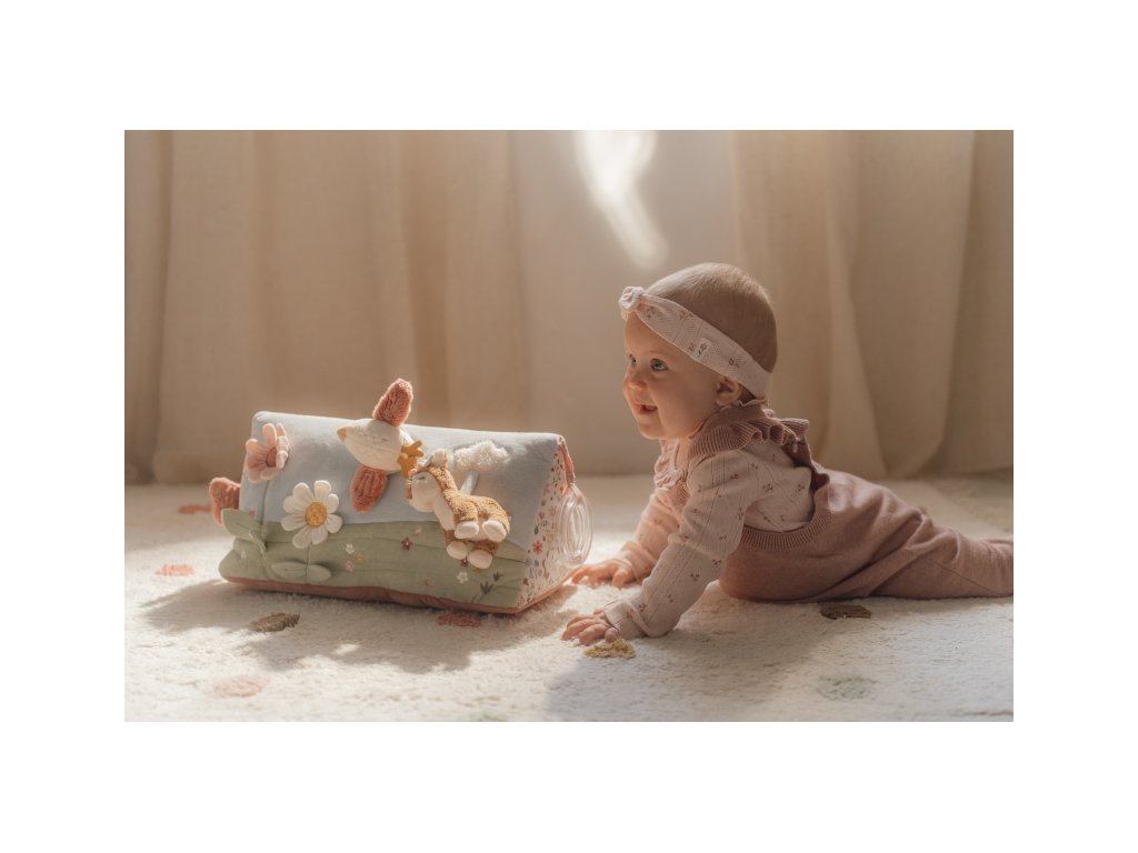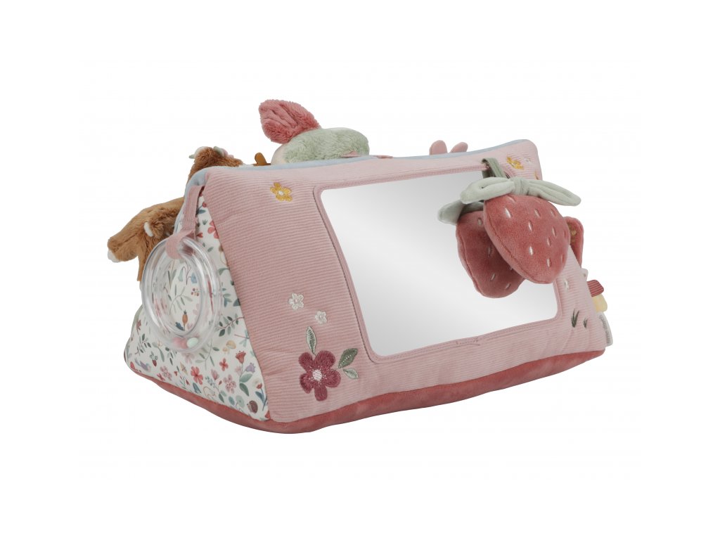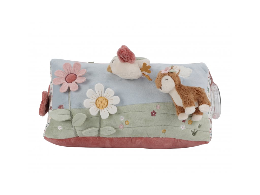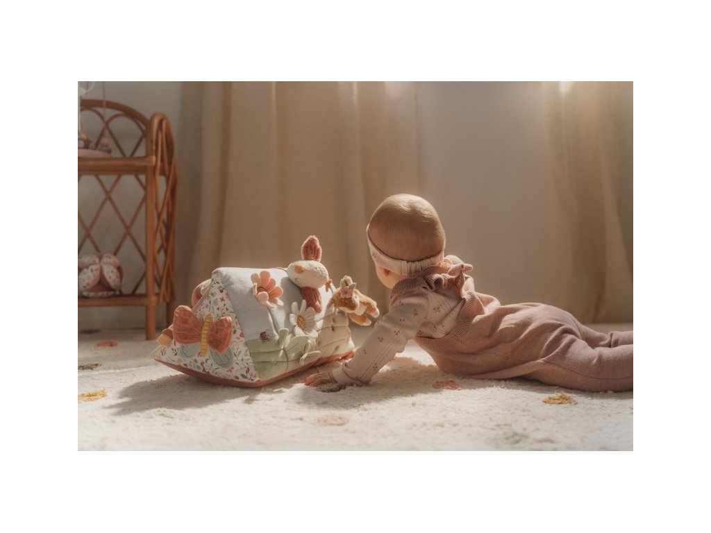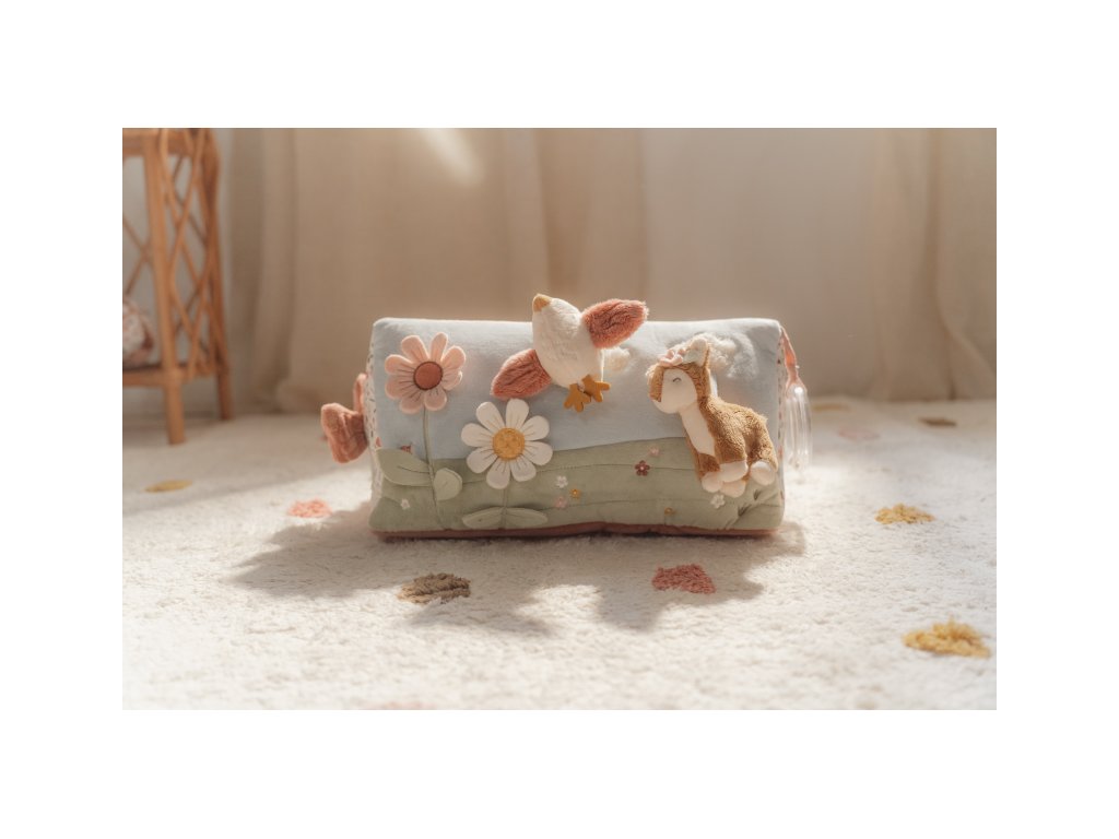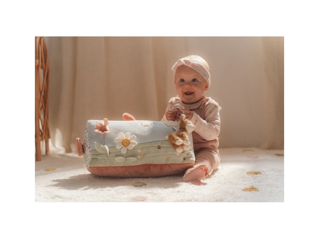 Polštářek z jemného, měkkého materiálu s krásnými motivy života na zahradě je speciálně navržený, aby podporoval hraní dítěte na bříšku. Hračky na polštářku i originální vyšívané aplikace lákají dítě ke zkoumání a pozorování. Každá strana polštářku je jiná, takže stačí polštářek otočit a nabídnout dítěti nové podněty k zabavení i rozvíjení jeho jednotlivých smyslů. Pro malého kojence, který tráví většinu dne i noci ležením na zádech, je důležité, aby trávil několikrát denně čas ležením na bříšku a takzvaným “pasením koníčků”. Poloha na bříšku přináší děťátku jiný pohled na svět a posiluje krční a zádové svaly, které mu později umožňují začít se přetáčet, lézt a sedět bez opory. Polštářek je součástí designové kolekce hraček Little Dutch Fairy Garden inspirované životem na zahradě. Rozměry: 34 x 18 x 18 cm Vhodné pro děti od narození.Doplňkové parametry