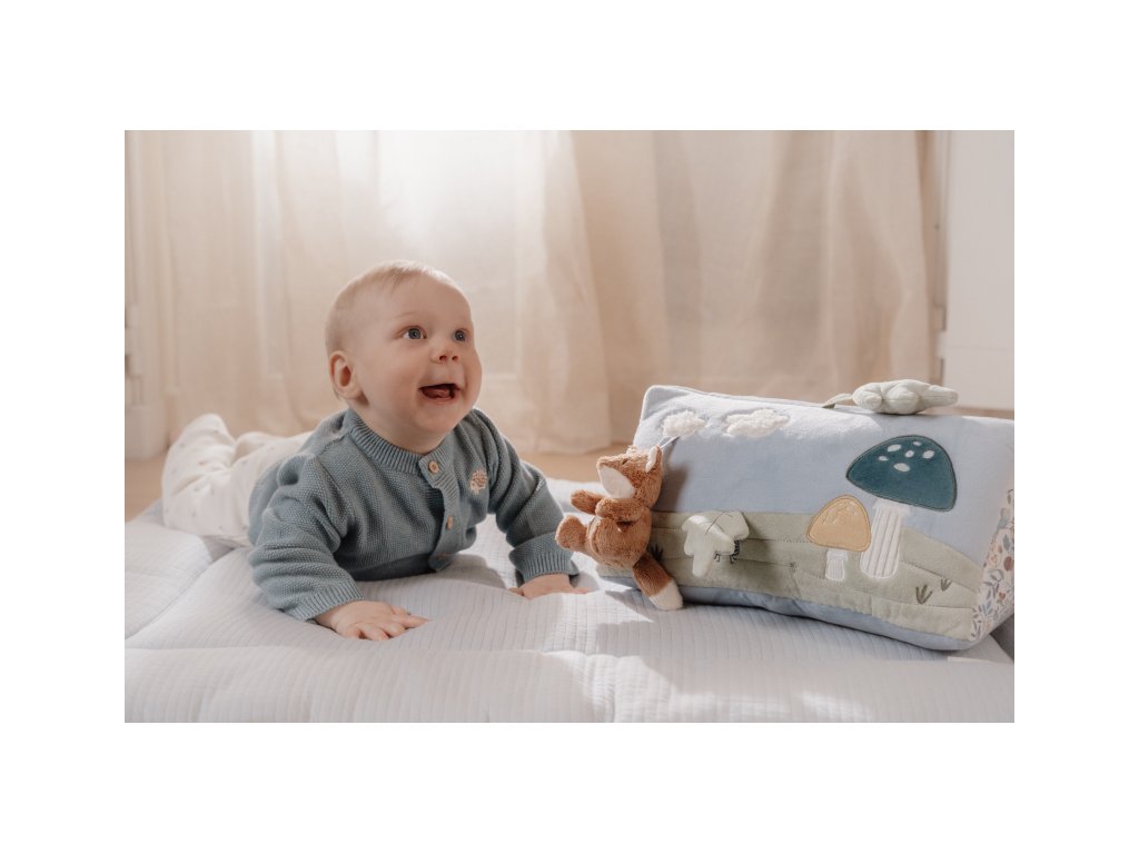 Polštářek z jemného, měkkého materiálu s krásnými motivy života v lese je speciálně navržený, aby podporoval hraní dítěte na bříšku. Hračky na polštářku i originální vyšívané aplikace lákají dítě ke zkoumání a pozorování. Každá strana polštářku je jiná, takže stačí polštářek otočit a nabídnout dítěti nové podněty k zabavení i rozvíjení jeho jednotlivých smyslů. Pro malého kojence, který tráví většinu dne i noci ležením na zádech, je důležité, aby trávil několikrát denně čas ležením na bříšku a takzvaným “pasením koníčků”. Poloha na bříšku přináší děťátku jiný pohled na svět a posiluje krční a zádové svaly, které mu později umožňují začít se přetáčet, lézt a sedět bez opory. Polštářek je součástí designové kolekce hraček Little Dutch Forest Friends inspirované životem v lese. Rozměry: 34 x 18 x 18 cm Vhodné pro děti od narození.Doplňkové parametry
