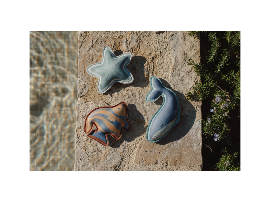 Nechte své dítě potápět se a hledat pod hladinou krásné barevné hračky v podobě velryby, rybky a hvězdice. Hračky z měkkého neoprenu pomalu klesají ke dnu a jsou ideální pro bezpečný trénink ve vodě. Hračky jsou součástí designové kolekce Little Dutch Ocean World. Součástí je praktický úložný sáček. Vhodné pro děti od 5 let.Doplňkové parametry