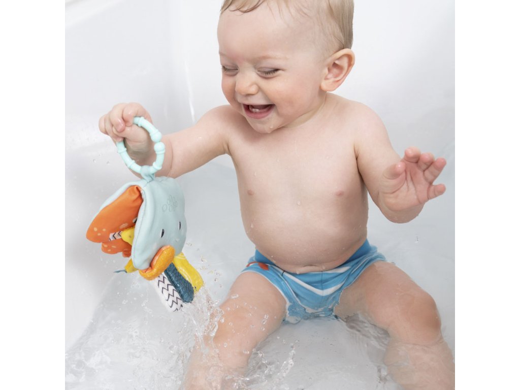 Knížka do vody chobotniceZábava na doma i do vodyObjevte kouzelný vodní svět. Při listování látkovou knížkou se miminko na šesti stranách seznámí s mnoha novými koupacími kamarády. Skryté chrastítko, šustící papír a zrcátko hravou formou stimulují dětské smysly, představivost a jemnou motoriku. • Měkký froté materiál• 6 stran zábavy s chrastítkem, šustícím papírem a zrcátkem• Rozvíjí dětské smysly, fantazii a jemnou motorikuDoplňkové parametry
