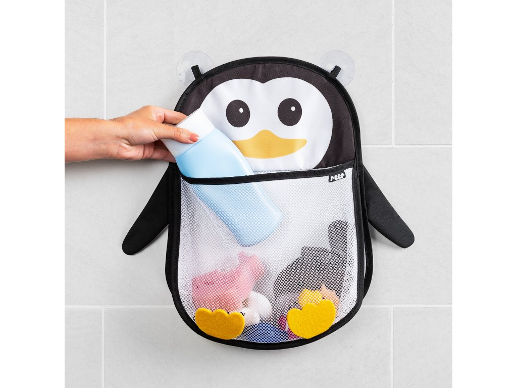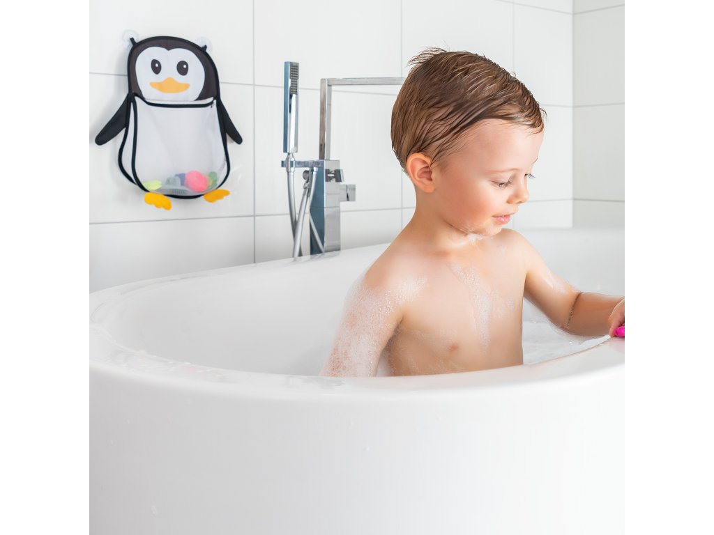 Síťka na hračky do vany My Happy Pingu- síťka na hračky do vany v designu tučňáka vhodném pro děti- praktické uložení hraček a dalších koupelnových doplňků- hygienické sušení díky síťovině propustné pro vzduch- dvě přísavky umožňují snadné připevnění na hladké povrchy, jako jsou hladké dlaždice a sklo- Velikost: cca. rozměry 26 x 29 x 10 cm- Kapacita: cca. 4 l- Materiál: 100% polyester- lze prát v pračce na 30° Pro uklizenější koupelnuVětšina dětí se ve vodě cítí šťastná a baví je cákat se ve vaně. Vzhledem k tomu, že si Vaše ratolest obvykle bere do vany hračku pro zábavu při koupeli vedle dětského šamponu, flanelu nebo kartáče do koupele, může se koupelna rychle zaplnit nejrůznějšími koupelnovými doplňky.Síťka na hračky do vany Můj šťastný tučňák Vám umožní po koupeli udržet všechny důležité věci v suchu a zároveň rychle nastolit v koupelně pořádek. Extra úložný prostor kapacita 4 litryDokonce i ti nejmenší z nás potřebují řadu koupelnového náčiní pro všestranný pocit při koupeli. Speciální dětský šampon pro citlivou dětskou pokožku, koupací kartáče nebo houby a samozřejmě hračky do vany, jako je mačkací kachnička nebo lodičky – díky objemu 4 litry je spousta místa, kam se všechny tyto věci pohodlně vejdou do velkého bříška roztomilého tučňáka. Hygienické sušení prodyšný materiálKoupelnová síťka je vyrobena z prodyšné síťoviny. Nejen, že to zaručuje, že zbytková voda zcela odkape, ale také umožňuje plynulou cirkulaci vzduchu v síťce. Vanové náčiní tak může hygienicky vyschnout a zabrání se hromadění bakterií a plísní. Pro zajištění optimální úrovně hygieny můžete síťku v pravidelných intervalech prát v pračce na 30°. Jednoduché a spolehlivé uchycení díky 2 velkým přísavkámK připevnění koupelnové síťky na stěnu nejsou potřeba žádné další háčky nebo podobné nástroje, protože jednoduše drží na místě pomocí dvou integrovaných přísavek. Přísavky zaručují protiskluzové držení prakticky na všech hladkých površích. To umožňuje flexibilní použití na omítnuté stěny nebo dokonce na sprchový kout. Pokud síťka již není potřeba, lze ji stejně rychle odstranit bez zanechání zbytků. Snadná manipulace extra velký otvorNikdo nemá rád, když po koupeli tráví spoustu času úklidem. Síťka do koupele umožňuje vše během okamžiku uklidit – stačí síťku podržet otevřenou a můžete vše uklidit do extra velkého otvoru s minimální námahou.Doplňkové parametry