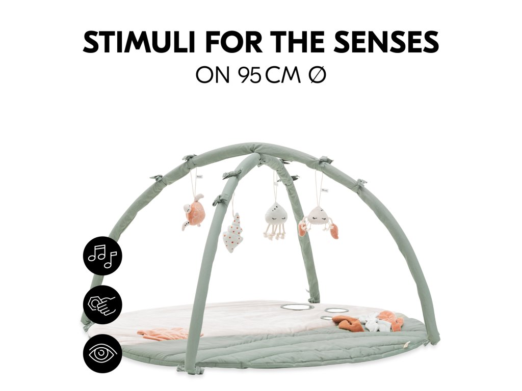 Hauck Deka s hrazdičkou Relax N Watch Water AnimalsVŽDY JE CO OBJEVOVATJEŠTĚ VÍCE ZÁBAVY PŘI HRANÍSTIMULACE SMYSLŮVŽDY JE CO OBJEVOVATAť už leží, sedí nebo se batolí, váš malý objevitel vždy objeví na dece něco nového.Deka s hrazdičkou je ideálním místem zábavy již od narození.ZRAKOVÝ, ZVUKOVÝ ČI HMATOVÝ VJEMPohled do zrcátka je úžasnou zábavou pro každé dítě - navíc je to skvělá zábava, která stimuluje zrak dítěte.Zvířátka na hrazdičkách vydávají zábavné zvuky - ideální pro rozvoj sluchu.CO TO TADY ŠUSTÍ…Hádej kde jsem? Se zvířátky je možné si hrát na schovávanou.Kde je želvička? Zalezl krab mezi řasy nebo se schoval do mušle.Kouzelná místečka navíc vydávají šustivý zvuk, který podněcuje zvídavost malých neposedů.MALÍ ZVÍŘECÍ KAMARÁDIPískající krab, chřestící medúza, vyšívaná mušle a želva se zrcátkem - každé zvířátko se rychle a snadno stane tím nejlepším kamarádem na hraní.NEUSTÁLE SE MĚNÍCÍ HERNÍ SVĚTZvířátka je možné mezi sebou zaměňovat. Děťátko tak může mít pokaždé nový svět, který je potřeba prozkoumat.Stačí zapojit fantazii a vydat se na cestu plnou zábavy.CHVÍLE ODPOČINKU PŘI HRANÍ PRO VAŠE DÍTĚ - A PRO VÁSDeka s hrazdičkou upoutá a zabaví vaše maličké, takže si můžete chvilku vychutnat svou oblíbenou kávu a zasloužený odpočinek.MĚKKÉ HRAZDIČKY S HRAČKAMIHrazdičky jsou vyrobeny z měkkého lehkého materiálu s pěnovým potahem, tak aby bylo vaše maličké v těch nejlepších rukách i když jej zrovna nedržíte ve svém náručí.LZE PRÁT NA 30° CPokud je potřeba je možné deku vyprat jednoduše v pračce na 30°.Bavlněný materiál je velmi odolný a snadno se čistí.Relax N Watch - Hrací deka se spoustou překvapeníVŽDY JE CO OBJEVOVATAť už vaše miminko leží, sedí nebo se batolí, vždy dokáže objevit na dece něco nového.Hrací deka je vhodným místečkem pro první hry pro děti již od narození.Pohled do zrcátka zaujme a rozesměje každé dítě - je to skvělá hra, jak stimulovat zrak.Zvířátka na hrazdičce vydávají legrační zvuky, které stimulují sluchový vjem vašeho dítěte.ŠUSTÍCÍ PŘEKVAPENÍHádej, kde jsem? Zvířátka je možné na dece poschovávat, ať už do mušle nebo mezi řasy. Kampak se schoval náš malý krab? Malé schovávačky navíc vydávají šustivý zvuk, který si vaše dítě zamiluje a se kterým si užije ještě více zábavy.Pískající krab, chrastící medúza, vyšívaná mušle a želva se zrcátkem : každé zvířátko je možné sundat, vyměnit, takže se svět kolem vašeho miminka bude neustále měnit.ODPOČINEK PRO VAŠE MIMINKO - I PRO VÁSDeka s hrazdičkou Relax N Watch zaujme i ty největší zvídavce a vy si tak budete moci, alespoň na chvilinku, odpočinou a vychutnat si svou oblíbenou kávu.Oblouky (hrazdičky) na zvířátka jsou vyrobeny z lehkého materiálu s pěnovým potahem, aby vaše maličké bylo v těch nejlepších rukách i mimo vaši náruč.PARAMETRY:Hmotnost produktu : 2,66 kgRozměry:Po sestavení : 95 x 95 x 57 cmPrůměr : 95 cmVhodné pro děti : od 0 do 36 měsícůDoplňkové parametry