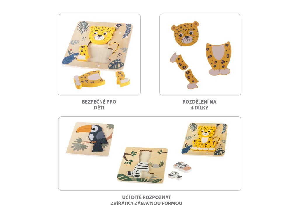 Malý objevitel říše zvířatDíky odolným dřevěným dílkům jsou tyto puzzle vyrobeny tak, aby vydržely nekonečné hodiny zábavy, a s použitím netoxických barev jsou zcela bezpečné pro děti. Puzzle také pomáhají rozvíjet jemnou motoriku a koordinaci ruka-oko, a to vše prostřednictvím zábavné a vzdělávací hry. Vytvořte si sbírku S každým balením získáte nový motiv zvířete, takže vaše dítě může postupně budovat svou sbírku a stát se skutečným znalcem zvířat! • Vhodné pro děti od 12 měsíců• Bezpečné netoxické barvy• Odolné dřevo• Procvičování trpělivosti• Koordinace ruka-oko• Podpora rozvoje jemné motoriky• Pro jednoho i více hráčů• Spousta zábavy • Tip na skvělý dárekDoplňkové parametry