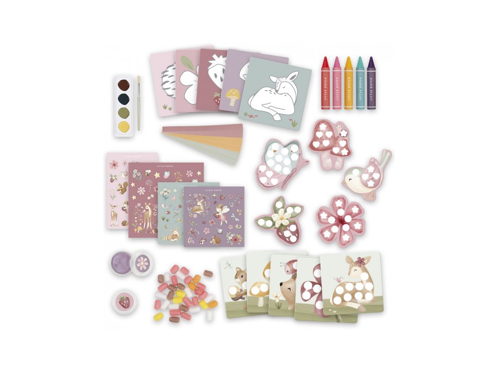 Extra velká kreativní sada obsahuje potřeby pro různé druhy výtvarného tvoření včetně pastelek, vodovek, samolepek, modelíny apod. Vše je zabalené v krásném boxu, do kterého vše po skončení hry snadno uklidíte. Kreativní sada vaše děti nejen zabaví, ale pomáhá i rozvíjet jejich jemnou motoriku a stimluje kreativní myšlení. Sada je součástí designové kolekce hraček a doplňků Little Dutch Fairy Garden inspirované životem na zahradě. Rozměry: 24 x 24 x 6 cm Vhodné pro děti od 3 let.Doplňkové parametry