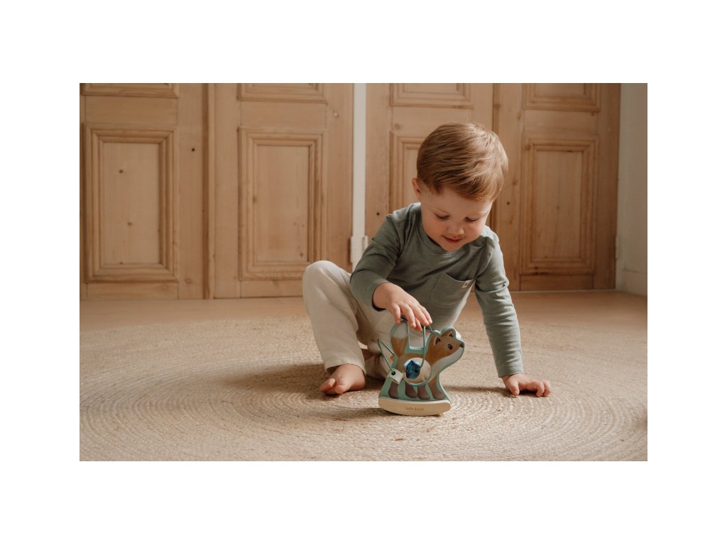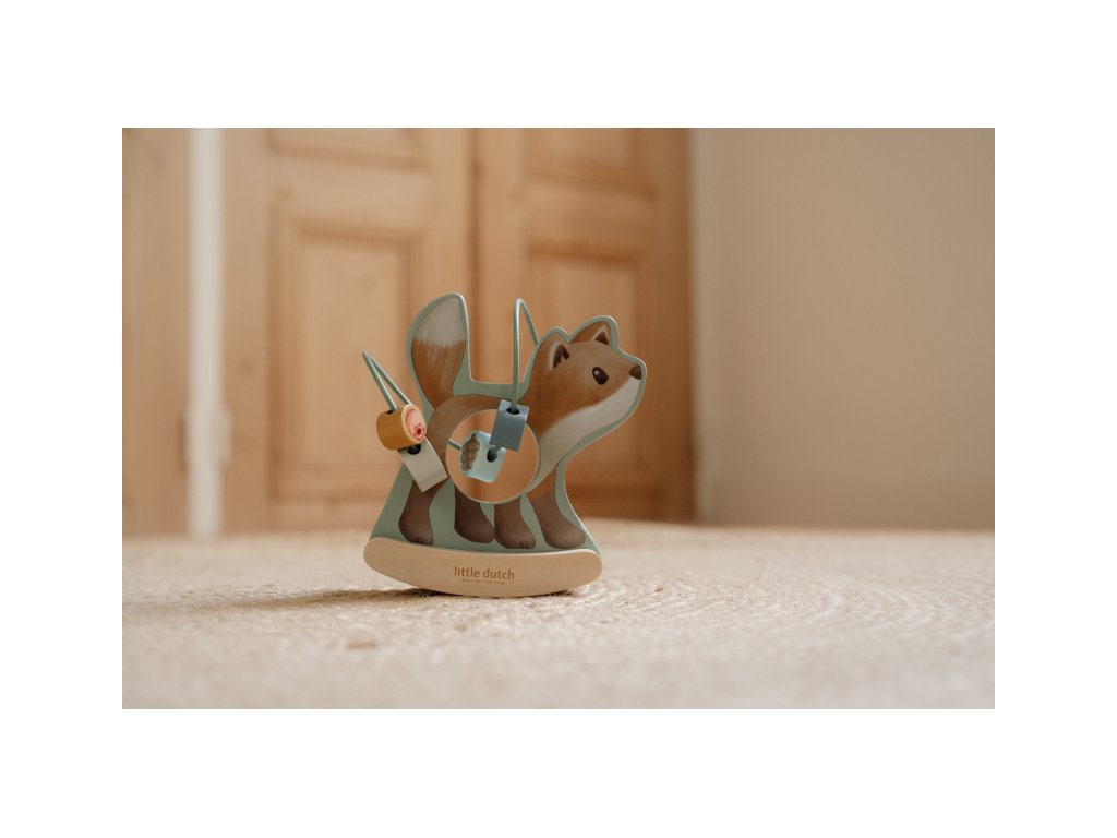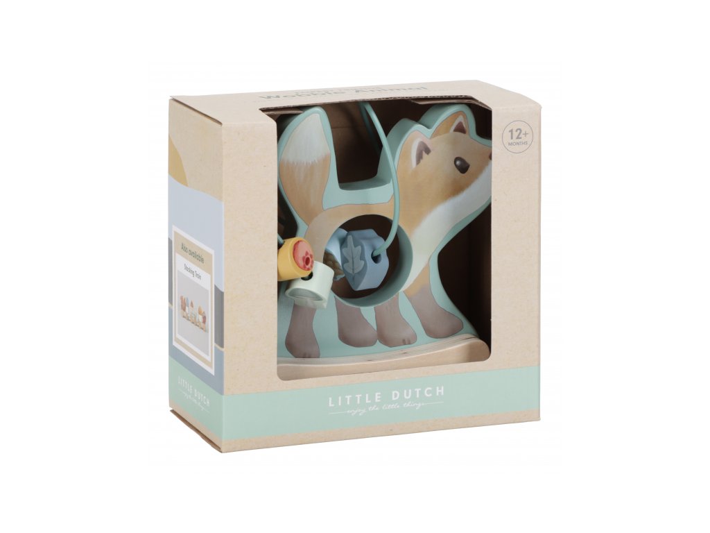 Dřevěná hračka v podobě něžné lišky se po postavení na podlahu či stůl jemně houpe a přitom se kolem ní na spirále pohybují posuvné dřevěné korálky s potiskem houbičky, šišky, lístku a brusinky. Hračka je ideální pro rozvoj koordinace ruka / oko dítěte slouží i jako krásná dekorace v dětském pokoji. Hračka je součástí designové kolekce hraček a doplňků Little Dutch Forest Friends inspirované životem v lese. Vyrobeno z dřeva certifikovaného FSC. Rozměry: 13,7 x 8,5 x 15,3 cm Vhodné pro děti od 12 měsíců.Doplňkové parametry