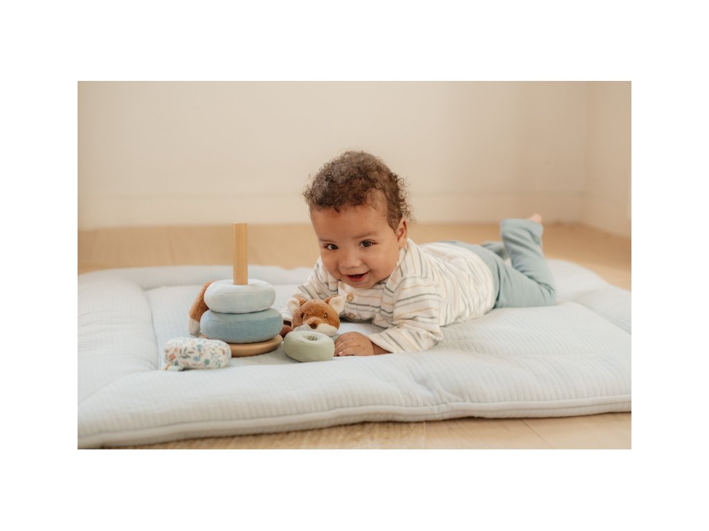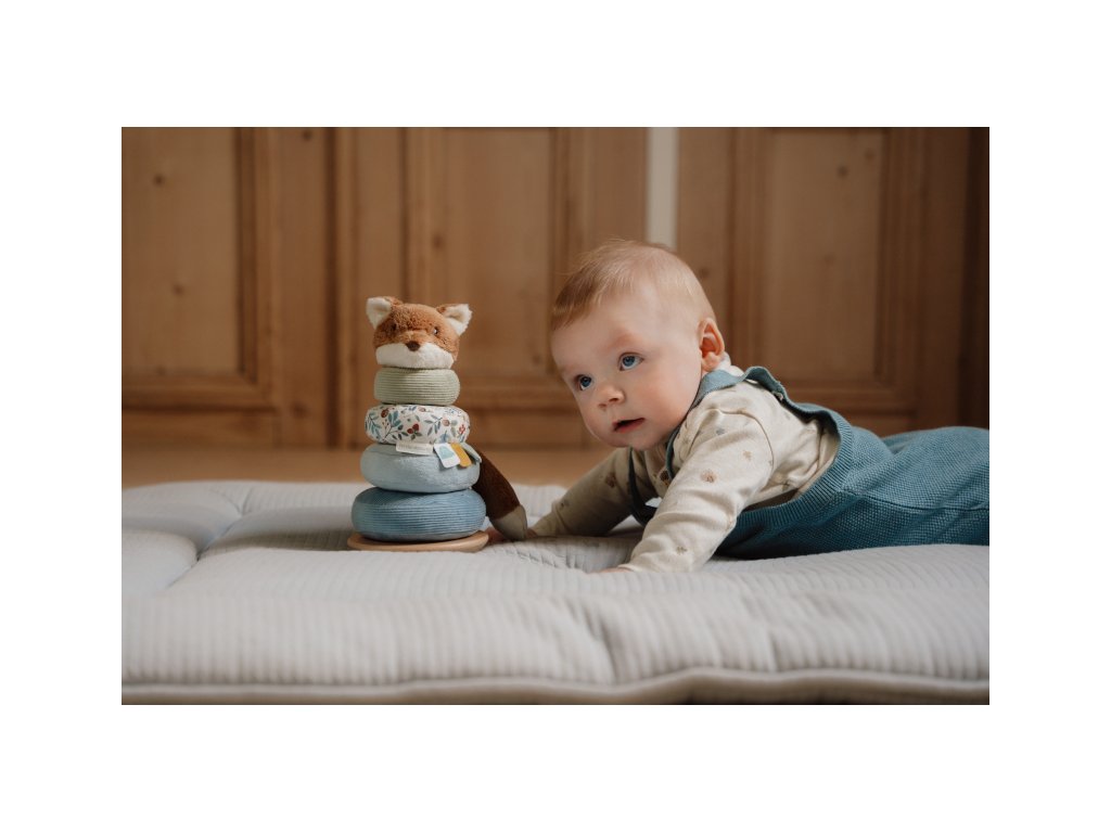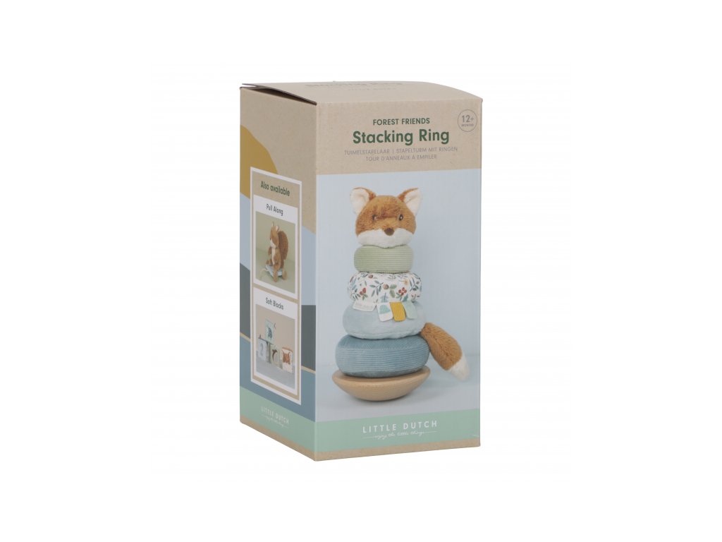 Plyšové nasazovací kroužky pro děti jsou navrženy tak, aby rozvíjely jejich koordinaci rukou a očí zábavnou a praktickou hrou. Děti se snaží umístit kroužky ve správném pořadí a vytvořit z nich pyramidu. To je docela výzva, protože pyramida má dřevěnou půlkulatou základnu a tak se kýve na všechny strany! Hračka je součástí designové kolekce hraček a doplňků Little Dutch Forest Friends inspirované životem v lese. Vyrobeno z dřeva certifikovaného FSC. Rozměry: 11 x 11 x 26 cm Vhodné pro děti od 12 měsíců.Doplňkové parametry