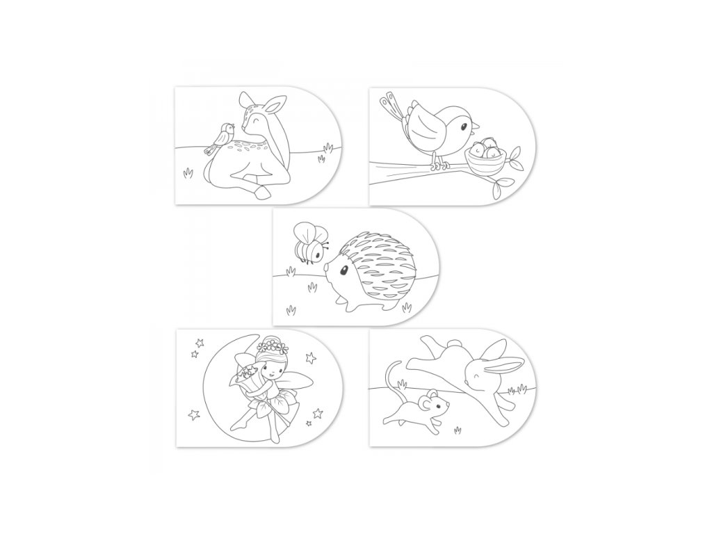 Krásné omalovánky na silném papíru obsahují 4 akrylové barvy se štětcem, 5 jednoduchých obrázků s motivy zvířátek a 25 čistých stránek pro malování dle vlastní fantazie dítěte. Díky spirále ve hřbetu se stránky omalovánek snadno otáčí. Omalovánky nabízí skvělý způsob, jak rozvíjet jemnou motoriku i představivost dítěte. Omalovánky jsou součástí designové kolekce hraček a doplňků Little Dutch Fairy Garden, inspirované životem na zahradě. Rozměry: 21 x 30 x 1,5 cm Vhodné pro děti od 3 let.Doplňkové parametry