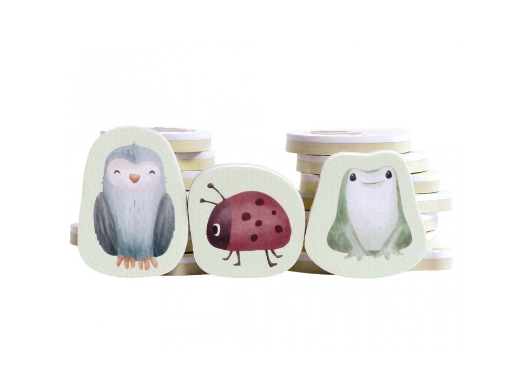 Pěnové samolepky do vany s natištěnými motivy ze života v lese zabaví vaše děti při koupání ve vaně. Samolepky stačí namočit a přitisknout je na vanu. Po koupeli je snadno uložíte do síťovinového sáčku s přísavkami, který je součástí výrobku. Hračka je součástí designové kolekce hraček a doplňků Little Dutch Forest Friends inspirované životem v lese. Balení obsahuje 16 samolepek. Vhodné pro děti od 10 měsíců.Doplňkové parametry