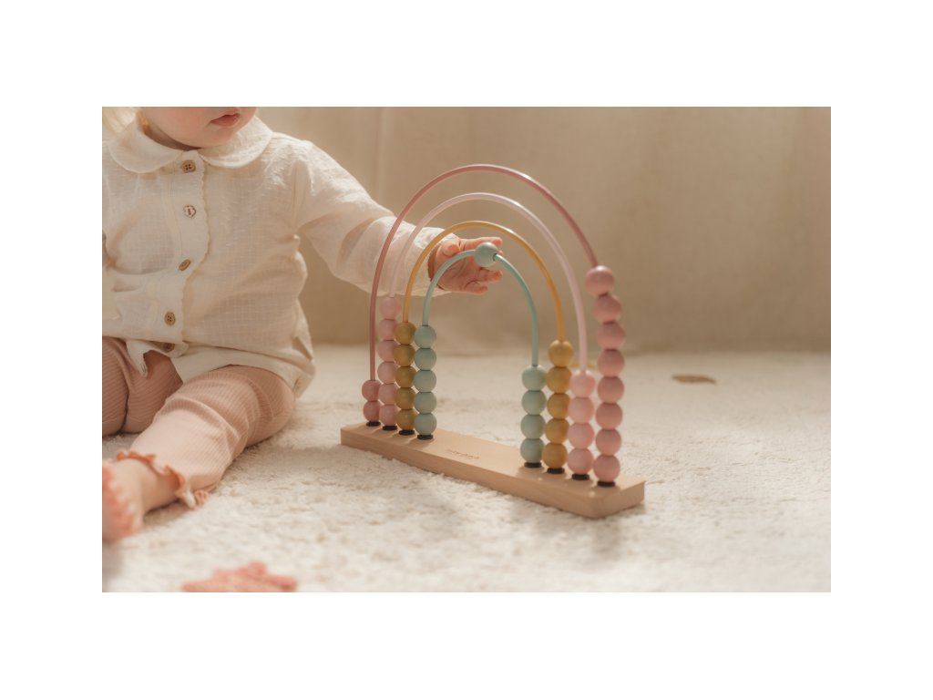 Počítání bude ještě zábavnější díky počitadlu ve tvaru duhy! Děti milují posouvání korálků tam a zpět. A když jsou trochu starší, mohou si s pomocí počítadla procvičovat barvy i počítání. Hračka pomáhá rozvíjet jemnou motoriku dítěte. Počítadlo je součástí designové kolekce hraček Little Dutch Fairy Garden inspirované životem na zahradě. Vyrobeno z dřeva certifikovaného FSC. Rozměry: 6 x 27,6 x 21,3 cm Vhodné pro děti od 12 měsíců.Doplňkové parametry