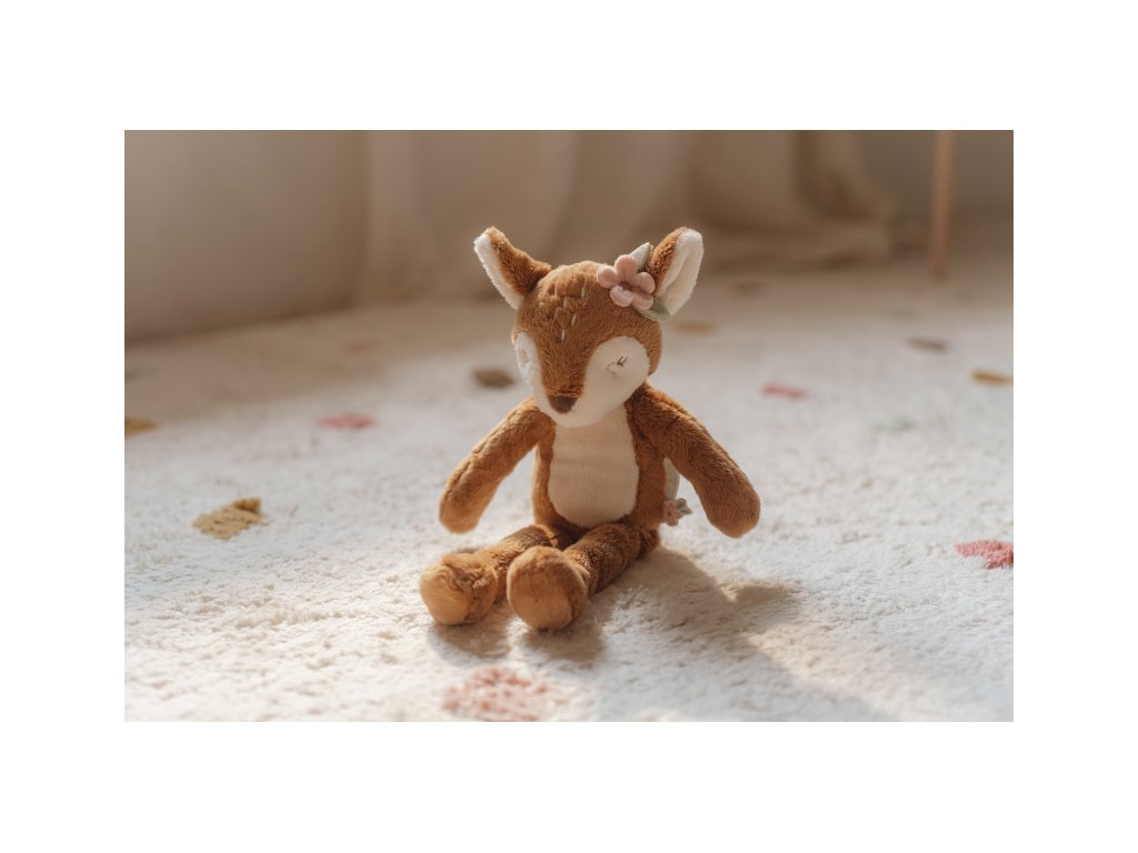 Něžná plyšová srnka je ideální jako mazlík do postýlky pro lepší usínání vašeho dítěte. Srnka umí i sedět a může se tak stát i krásnou dekorací v dětském pokojit. Hračka je součástí designové kolekce hraček a doplňků Little Dutch Fairy Garden inspirované životem na zahradě. Rozměry: 23 x 8 x 33 cm Vhodné pro děti od narození.Doplňkové parametry