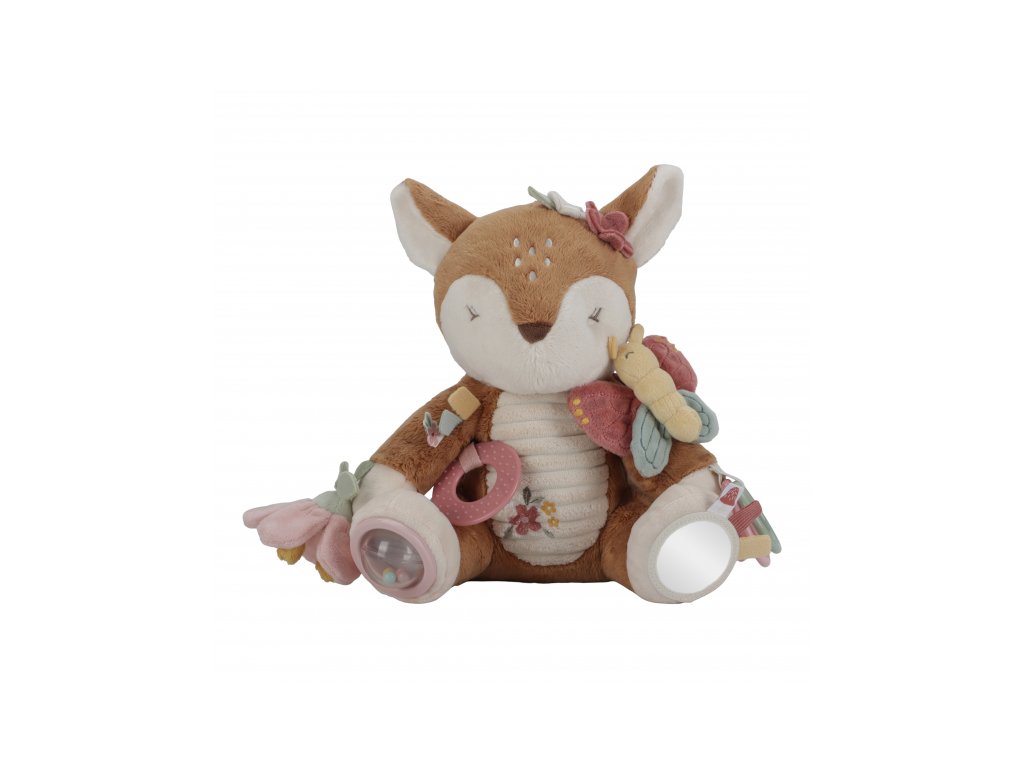 Plyšová hračka v podobě něžné srnky láká ke hraní a zkoumání. Srnka je je vyrobena z velmi jemného a příjemného materiálu, při pohybu chrastí a nabízí různorodé aktivity ke zkoumání. Hračka dítě zabaví a může sloužit i jako kamarád do postýlky pro klidné usínání. Hračka je součástí designové kolekce hraček a doplňků Little Dutch Fairy Garden inspirované životem na zahradě. Rozměry: 25 x 22 x 27 cm Vhodné pro děti od narození.Doplňkové parametry